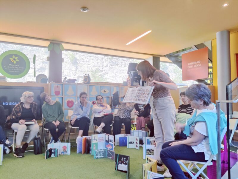 Insieme a 25 partecipanti, in particolare maestre dell’infanzia e insegnati della primaria, entriamo e usciamo da una giungla di libri illustrati di tutti i generi, da tutto il mondo e per tutte le età per scoprire il margine in cui si gioca la nostra relazione di vicinanza / lontananza con le immagini, esplorando dove vorremmo andare con la nostra immaginazione e ciò che avvertiamo come ostacolo e ci tiene a distanza.