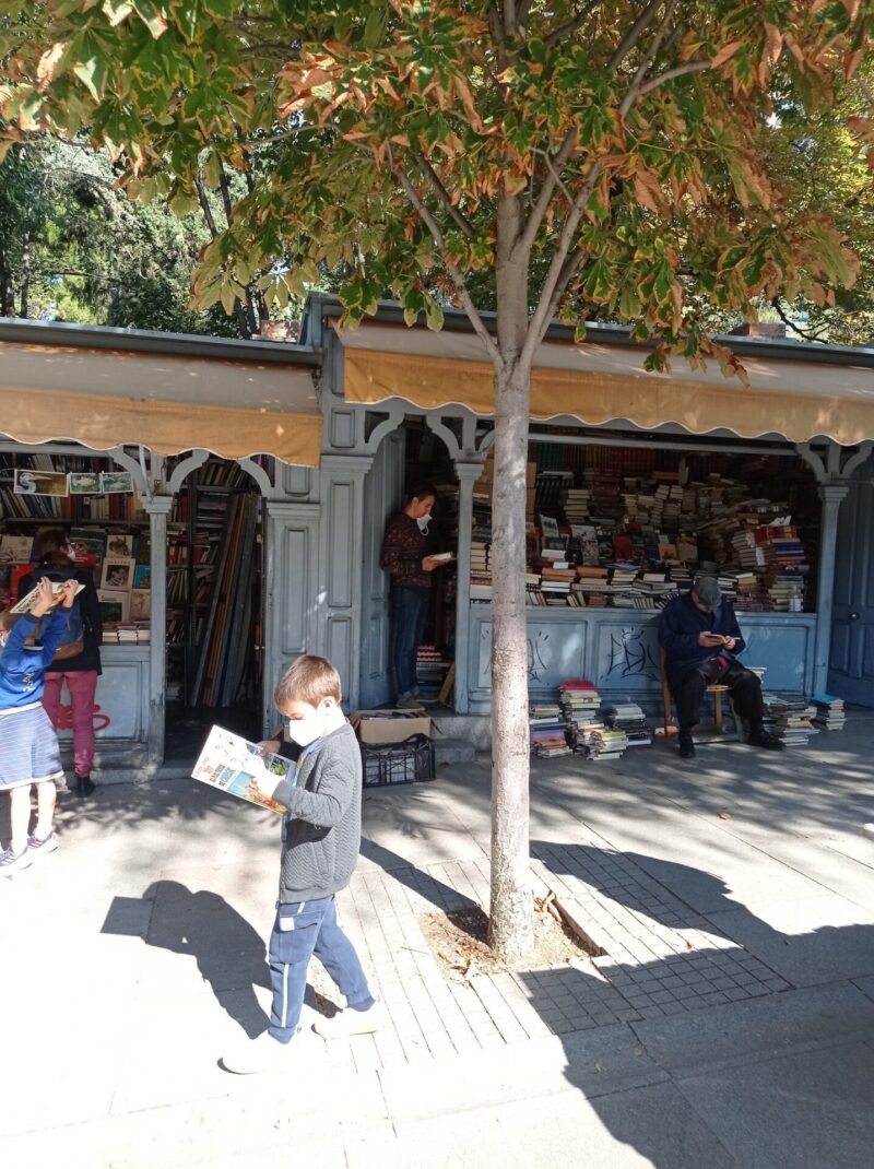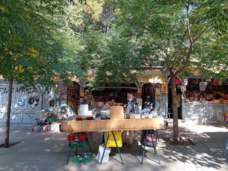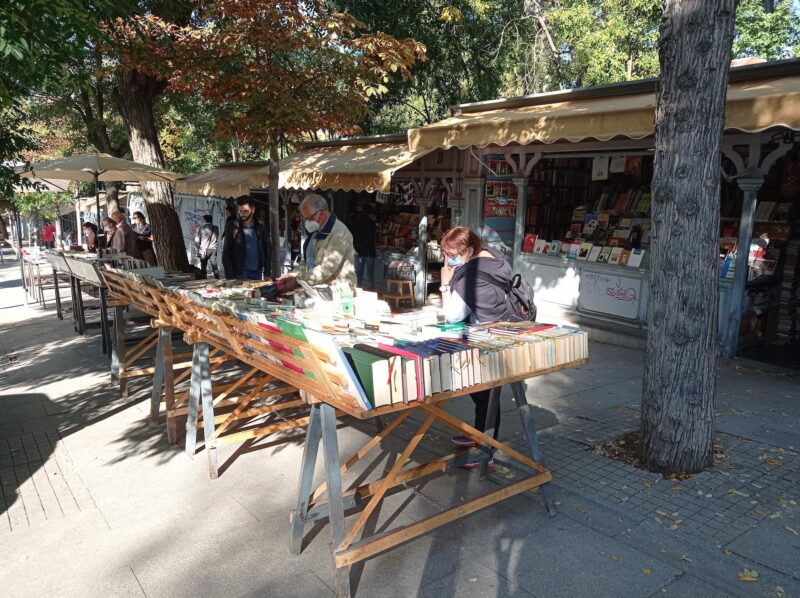 Libri di storia, filosofia, arte, fumetti, qualche libro per ragazzi: una panoramica variegata dell’editoria spagnola di seconda mano prima di addentrarci nel Parque del Retiro per vedere la mostra di Vivian Suter al Palacio de Velázquez.
