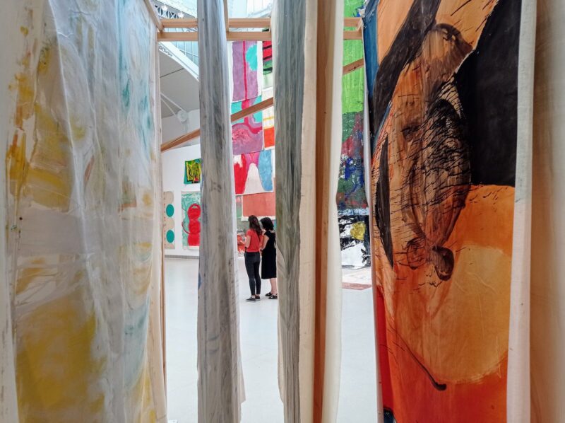 Scoperta grazie alle nostre ricerche per il progetto di formazione Il libro nella giungla, l’artista argentino-svizzera crea coloratissime e leggere foreste in movimento che cambiano aspetto e sensazioni a seconda del punto di osservazione, allestendo nello spazio centinaia di tele astratte dipinte nel suo studio guatemalteco a cielo aperto vicino al lago Atitlán.