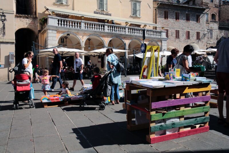 Ci rivediamo il sabato nella piazza di Assisi al bookshop sotto un cielo senza nuvole che sa ancora d’estate.