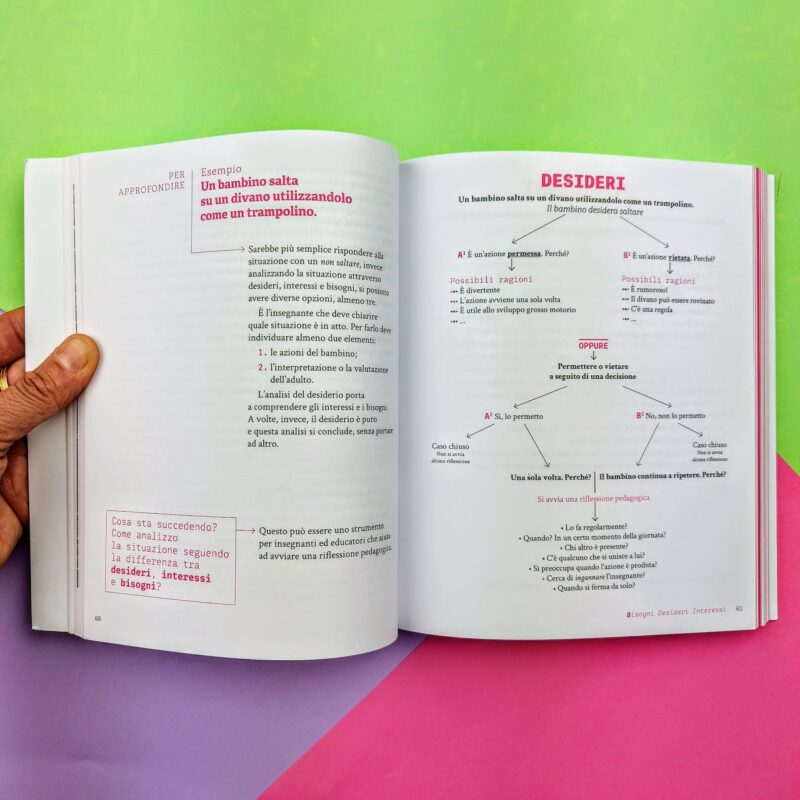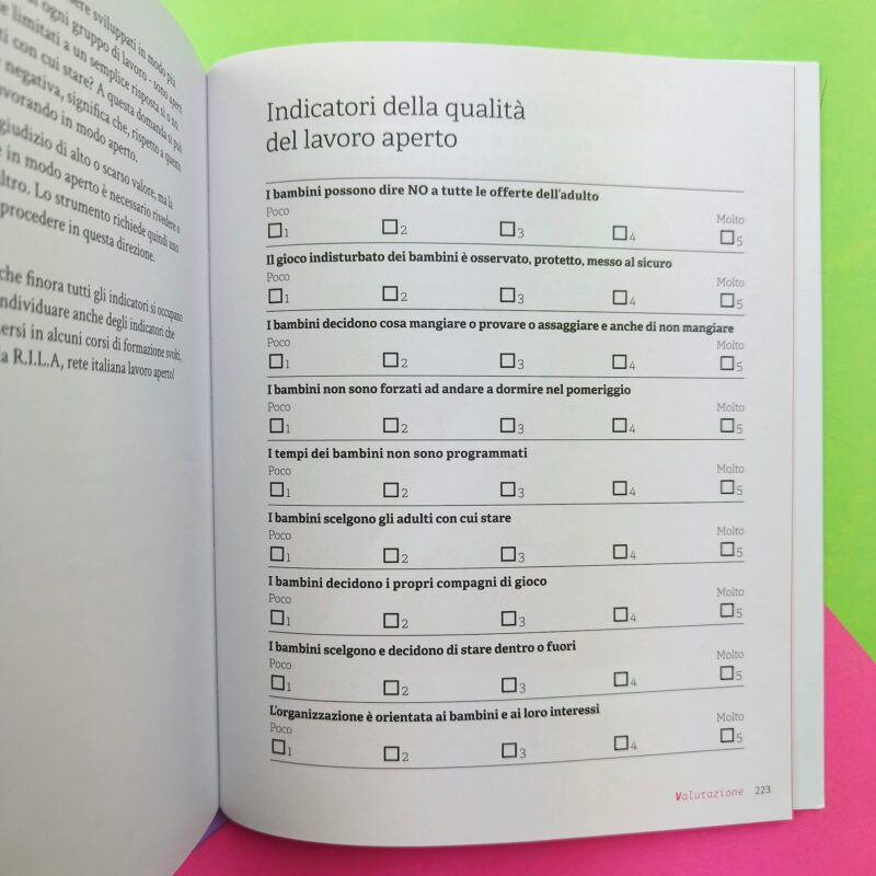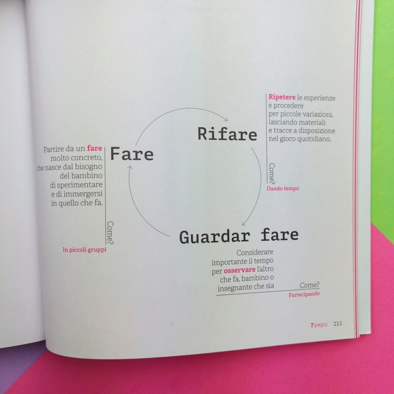L’esperienza con bambini e ragazzi sordi aveva sgomberato il campo da dubbi: se il gioco è un diritto di tutti i bambini, ad ognuno deve essere garantito un contesto educativo in cui giocare nei propri modi, tempi e interessi. Abbiamo subito compreso che l’organizzazione tradizionale del nido e della scuola dell’infanzia non facilitava la messa in pratica delle nostre idee e abbiamo deciso che era necessario cambiare le cose. (..) Il cambiamento è stato frutto di passaggi fatti insieme al gruppo di lavoro di nido e scuola e ha portato alla creazione di luoghi di gioco differenziati in cui poter giocare, di un’organizzazione basata sulla scelta, di un unico gruppo di lavoro in un’ottica di corresponsabilità. Un processo in continuo divenire, una grande rivoluzione“