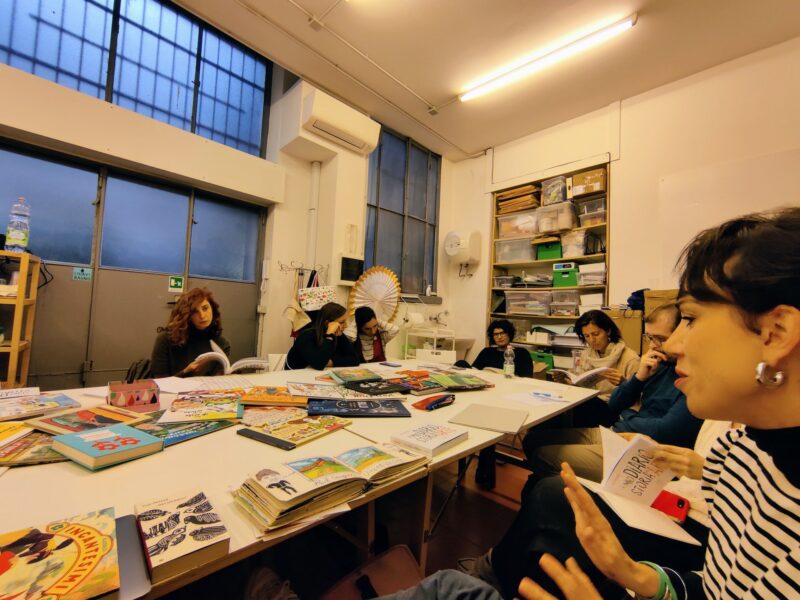 Dal 2018 abbiamo maturato un progetto articolato di educazione alla lettura e abbiamo iniziato a uscire dalla libreria per portare “fuori” la nostra esperienza alla scoperta di tempi e spazi dove esplorare insieme alle persone più diverse l’albo illustrato come dispositivo multiplo di attivazione di processi di attenzione, osservazione, concentrazione, cura, ascolto, condivisione e immaginazione, tenendo insieme gli aspetti estetico-materiali dell’oggetto libro e l’analisi dei contenuti.