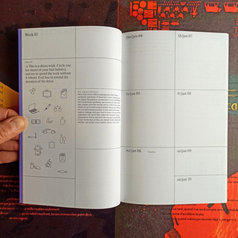 Non la solita Moleskine! Un’agenda minimale autoprodotta dalla grafica svizzera Julie Joliat per cambiare stile di vita in armonia con il pianeta entro un anno.
