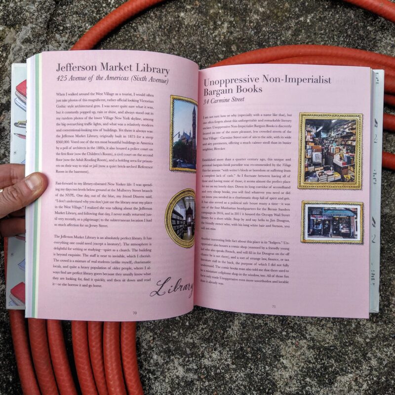 Ci accontentiamo di leggere, sognando ad occhi aperti, A booklover’s guide to New York (Rizzoli International 2019) della scrittrice Cleo Le-Tan che è riuscita a raccontare tutte le più belle librerie e biblioteche di New York insieme al padre, vecchia matita del New Yorker.