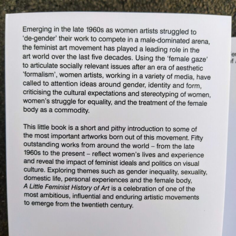 la celebrazione di uno dei più ambiziosi, influenti e duraturi movimenti artistici che sono emersi nel ventesimo secolo. Il libro è una breve e coincisa introduzione ad alcuni dei pezzi d'arte più importanti nati da questo movimento. Cinquanta lavori – dai tardi anni `60 ad oggi – riflettono la vita e le esperienze di donne, ma anche il mutare della posizione delle artiste in quanto donne, capaci di rivelare l'impatto del femminismo e della politica nella cultura visiva odierna.