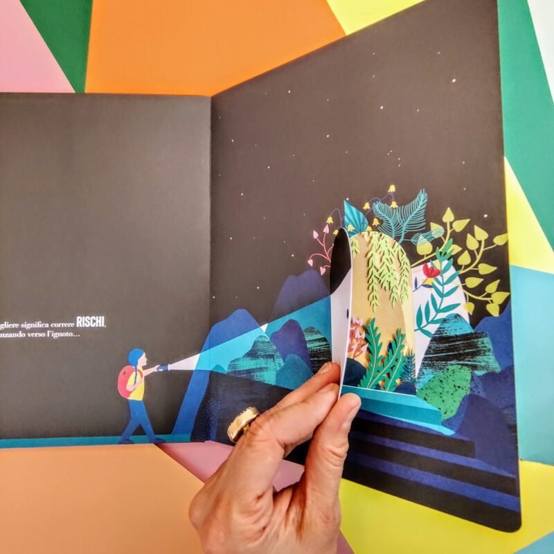 Dopo la libertà di essere e amare chi si desidera, il nuovo albo di Denis Peiron e Hélène Druvert per scoprire il potere e la responsabilità di ogni scelta, minuscola e immensa, su di sé e sugli altri. Pop up e giochi cartotecnici alla scoperta di strade e possibilità, con piccola mappa-scrigno finale per perdersi e ritrovarsi.