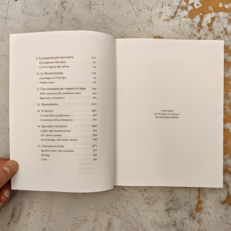 "La casa è al centro di una contraddizione insanabile: spazio fisico dell'abitare, di cura e di riproduzione sociale da una parte; merce, investimento e prodotto finanziario dall'altra. In Italia e altrove le politiche della casa hanno finito per promuovere il secondo aspetto. (..) La casa di proprietà è centrale nel progetto politico di conservazione che ha plasmato la società e la cultura, penetrando nel senso comune, facendosi valore individuale interiorizzato"