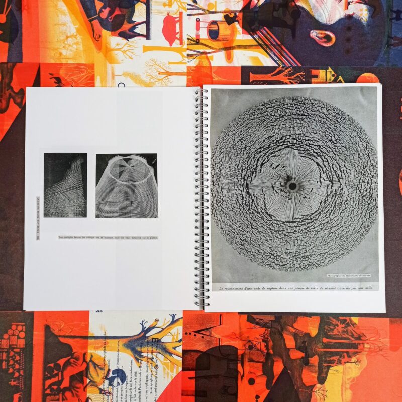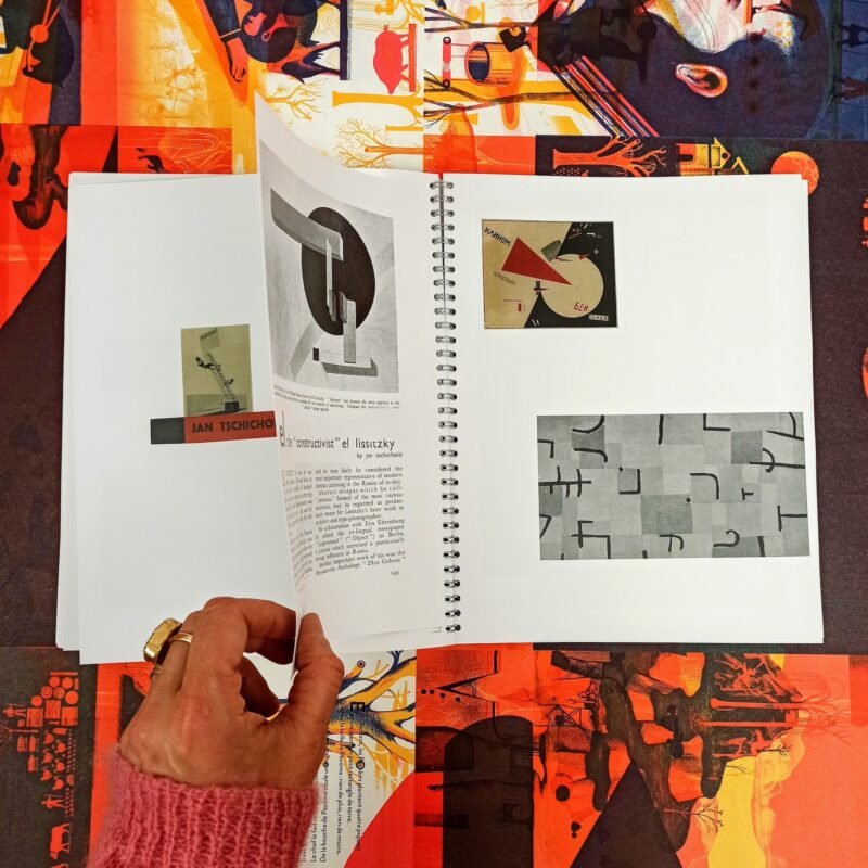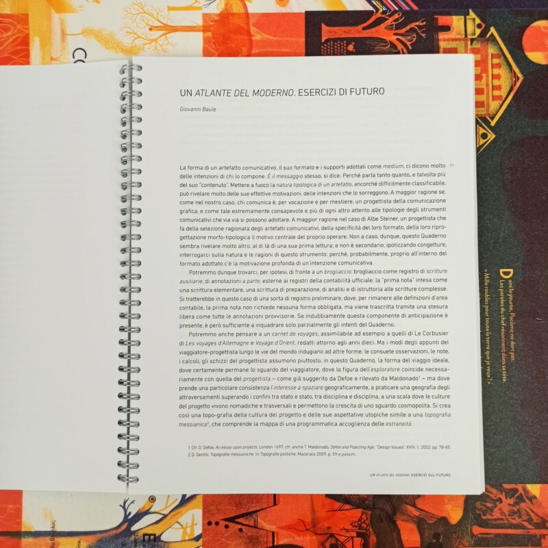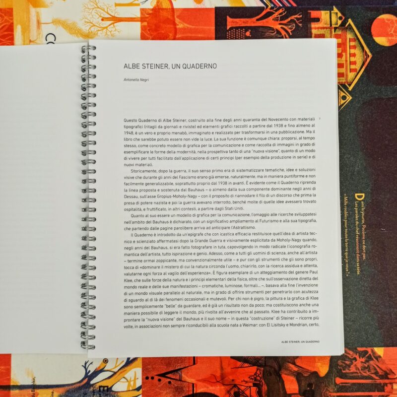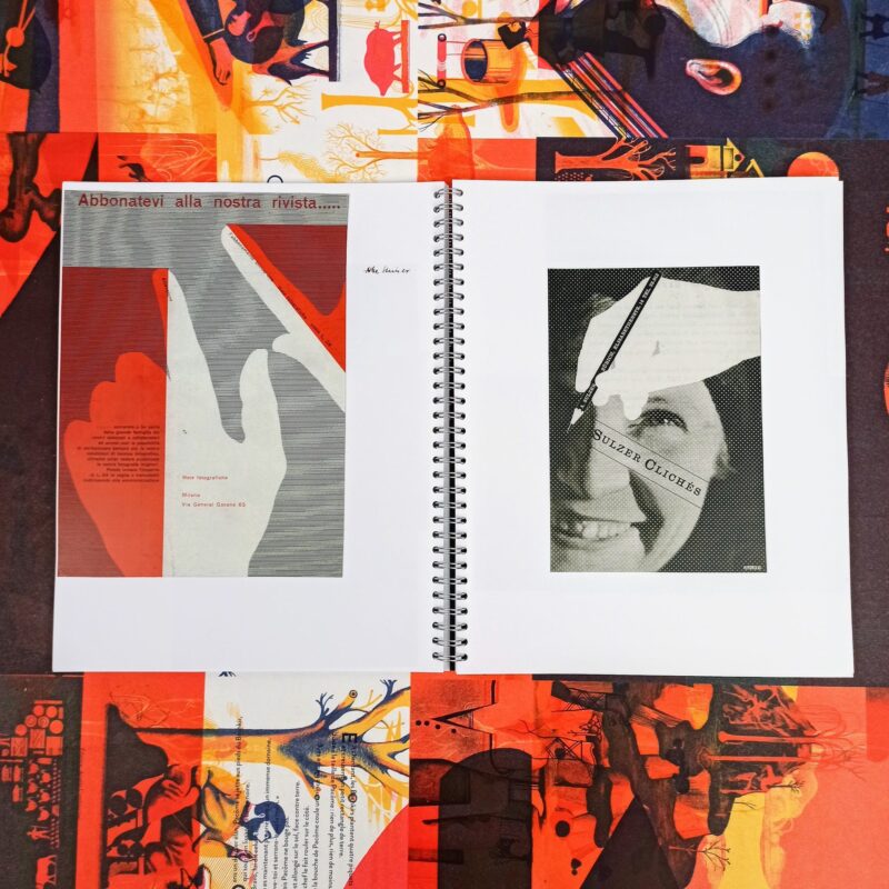 Un’idea progettuale, un quaderno di Albe Steiner, che porta l’intestazione “Ricerche”, sul quale alla fine degli anni Trenta, uno degli “intellettuali della grafica italiana” inizia a incollare immagini tratte da riviste e libri italiani e d’oltreoceano, in tempi di informazioni inesistenti o censurate. Il quaderno, con ritagli di architetture, mostre, studi sul movimento, macchine, oggetti tecnologici, fenomeni fisici, sculture, dipinti, film astratti, tipografia, arredi. Non una semplice raccolta iconografica ma uno strumento di ricerca che gli consente di costruire una nuova grammatica visiva. È il contributo italiano più organico all’allora nascente visual design, con il quale Steiner indaga la “funzionalizzazione comunicativa” di tutti gli “ismi” in una prospettiva di fondazione della disciplina della grafica finalmente autonoma.