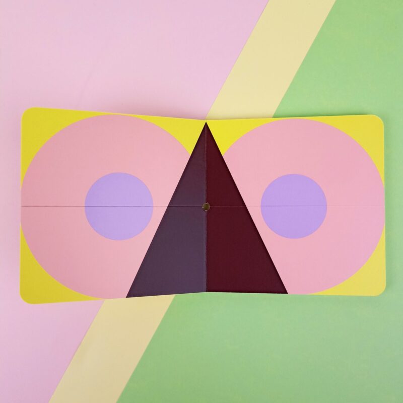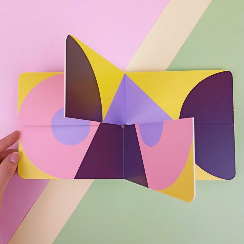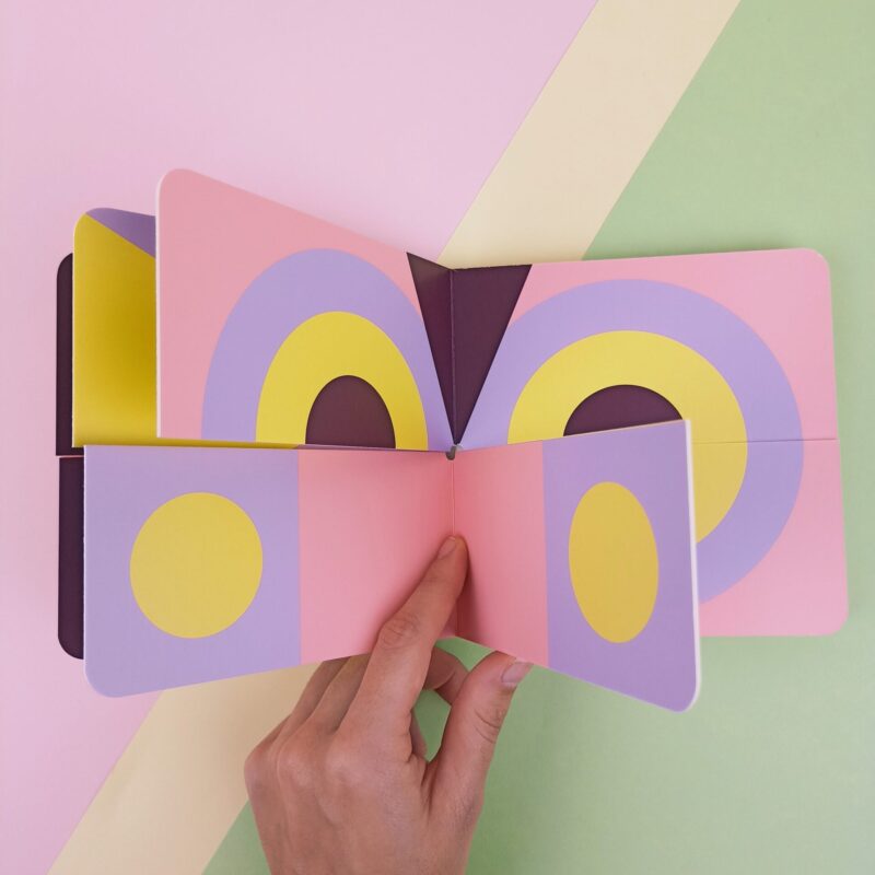 Giocare con le forme per creare sempre nuove combinazioni, a colpo d’occhio o piano piano. Tra le pagine appare e si trasforma un’immagine di leggerezza che vola come una farfalla.