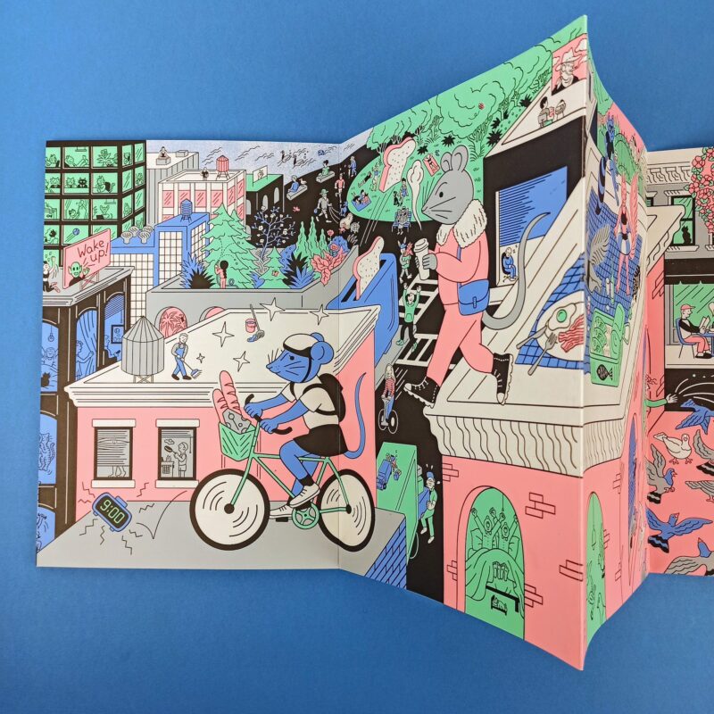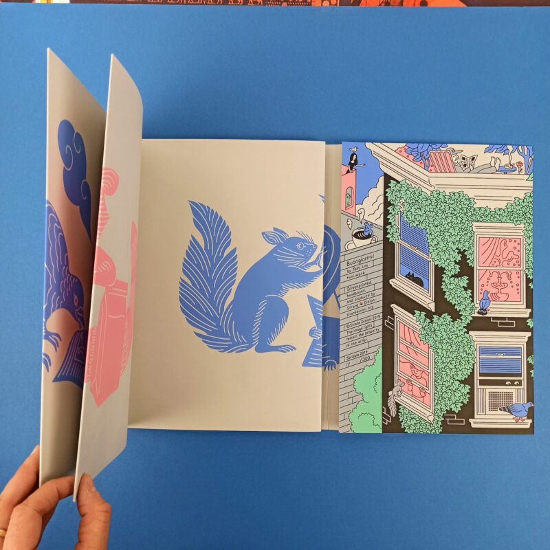 leporello in cartoncino, edizione limitata rilegata a mano e stampata in serigrafia in 300 copie