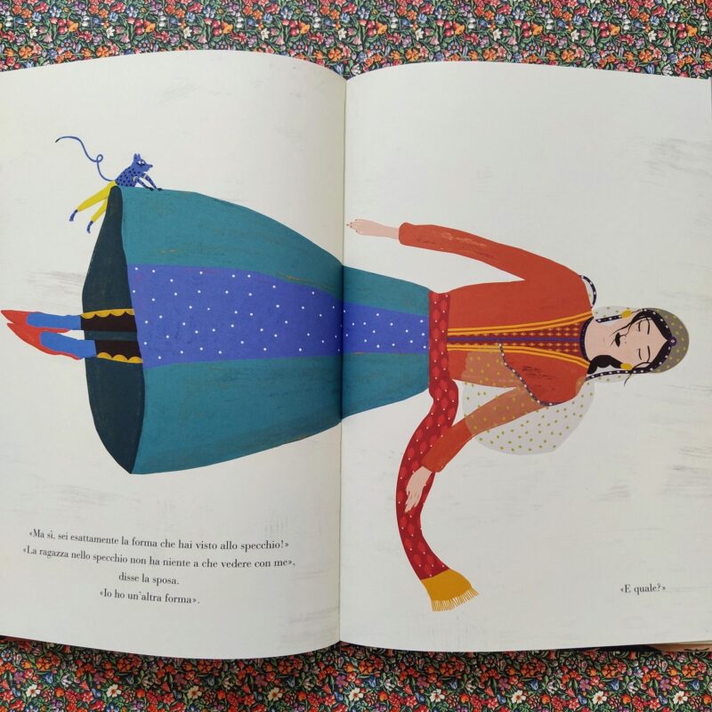 storia. Una STORIA! Una ragazza non si è mai guardata allo specchio. Proprio il giorno del suo matrimonio con uno sconosciuto si vede per la prima volta riflessa e fugge. Perché? Non è lei che il ragazzo sta sposando, è un'altra donna nella quale lei non si riconosce. "Sei tu" gli dice lui. "No io ho un'altra forma". " E quale?". Quale lui gli chiede. Glielo chiede. E da qui prende il via l'immaginazione. A dire quante forme ognuno ha, si sente, si vede, senza bisogno di specchi. Più di una. Tante. E che cosa dice chi la guarda? Chi si sta avvicinando a lei? Questa storia per tutte le volte che si cerca un libro per parlare d'amore e non si trova. Per tutte le volte che ci si dispera a leggere l'ennesima storia sull'identità e in realtà non è una storia ma una ricetta che cade negli stessi stereotipi che vuol far cadere.
