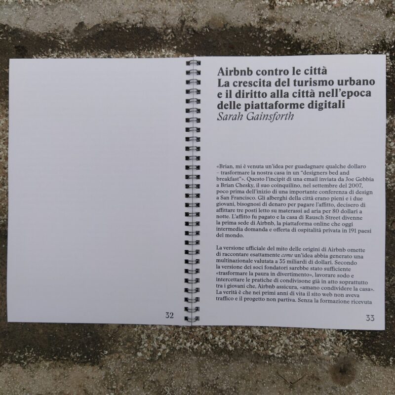 <<La coazione a muoversi ossessivamente, impiegando la maggior parte del denaro, del tempo libero e lavorativo e dello spazio mentale, nell’organizzazione degli spostamenti, si palesa sempre di più come una forma di controllo sociale. L’invenzione dei voli low-cost, delle crociere low-cost, dei soggiorni low-cost, persino del lusso low-cost sul modello di Sharm-el-Sheikh, è stato utilissimo a mascherare il modello di sviluppo diseguale. C’è sempre meno lavoro pagato, ma si può tirare a campare affittando casa su Airbnb>>.