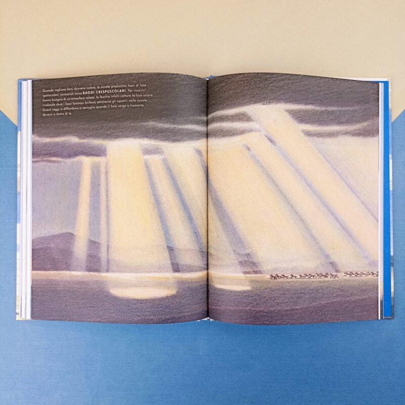 Così descrive il cielo Wislawa Szymborska e in questo libro illustrato affondiamo la ricerca nelle nuvole e su come influenzino il tempo atmosferico attraverso le matite di William Grill, mago del segno divulgativo fin da Shackleton’s Journey.
