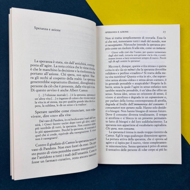 «L’angoscia si aggira come uno spettro. Solo la speranza può farci recuperare quel vivere che è qualcosa in più del sopravvivere». Il libro più sentito e vivo di una delle grandi voci critiche di questi anni. Un saggio che vibra di indignazione, ma anche di fiducia. E dove si sente l’urgenza dell’utopia. Stiamo barattando l’empatia, la solidarietà, la stessa capacità di pensare e di raccontare la nostra esistenza con un eterno presente sovraccarico di informazioni disorientanti, ansie da prestazione, solitudine. Eppure ci sono ancora spazi d’azione e pensiero, altri modi di vivere. E a innervarli è la forza della speranza. Una forza che non si esplica nell’attesa, ma apre la strada alla rivoluzione. Attraverso un confronto ? un vero e proprio corpo a corpo ? con alcuni dei maggiori pensatori del Novecento, Byung-Chul Han traccia una topografia di questo concetto e del suo potere salvifico. Perché chi spera sa che l’ultima parola ? su di noi e sul mondo ? non è ancora stata detta.
