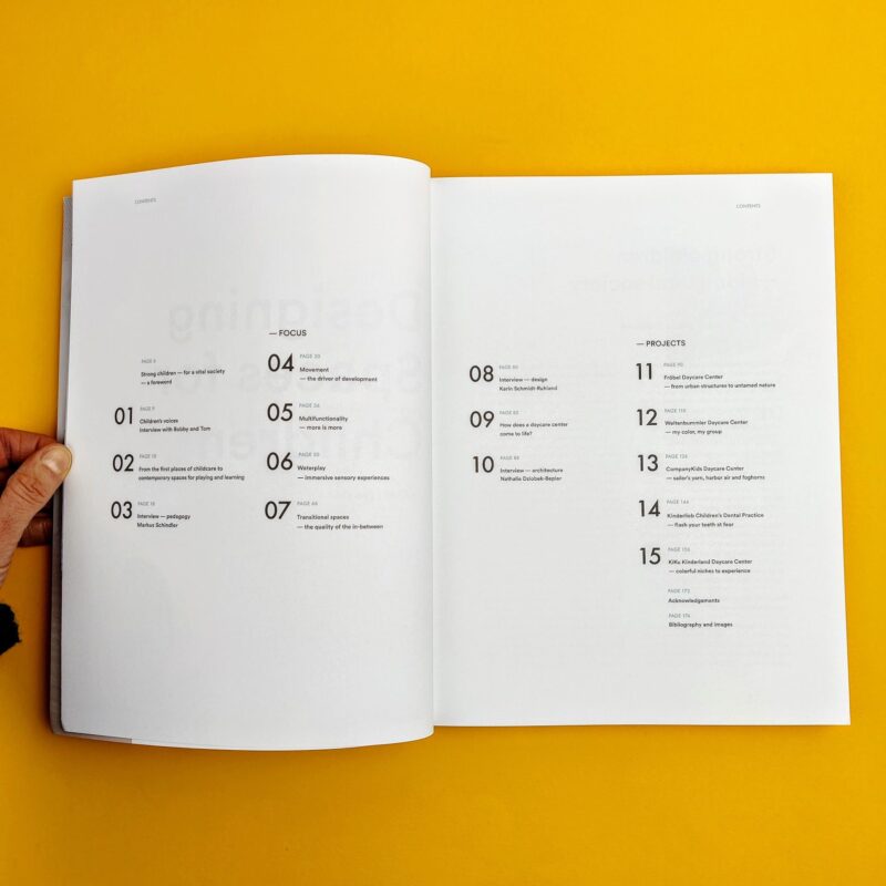 For years, the Berlin architectural firm baukind has been creatively balancing the strict legal requirements and architectural possibilities of architecture suitable for children–always with a view to children’s needs. The book presents realized projects, such as the kindergarten Weltenbummler in Berlin, and aims to foster the equal involvement of children in the design of our environment.