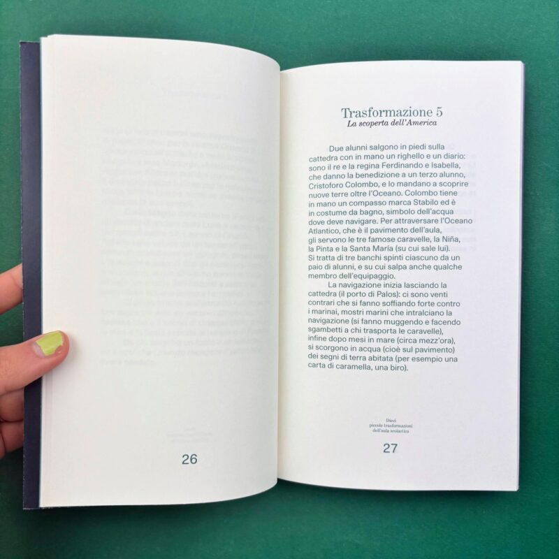 Il testo che ha dato origine alla sotto-collana di Frisbee, che ne ha aperto, per così dire, lo “spazio logico di pensabilità”, è una geniale rifunzionalizzazione degli arredi e degli utilizzatori dell’aula scolastica per mettere in scena alcuni classici della letteratura e alcuni momenti capitali della storia dell’umanità (dall’Odissea ai Promessi Sposi, dalla Rivoluzione francese a quella copernicana, dall’Orlando Furioso alla scoperta dell’America…) con una grande potenzialità ludico-didattica per un testo che regala divertimento e realmente “adottabile” in classe.