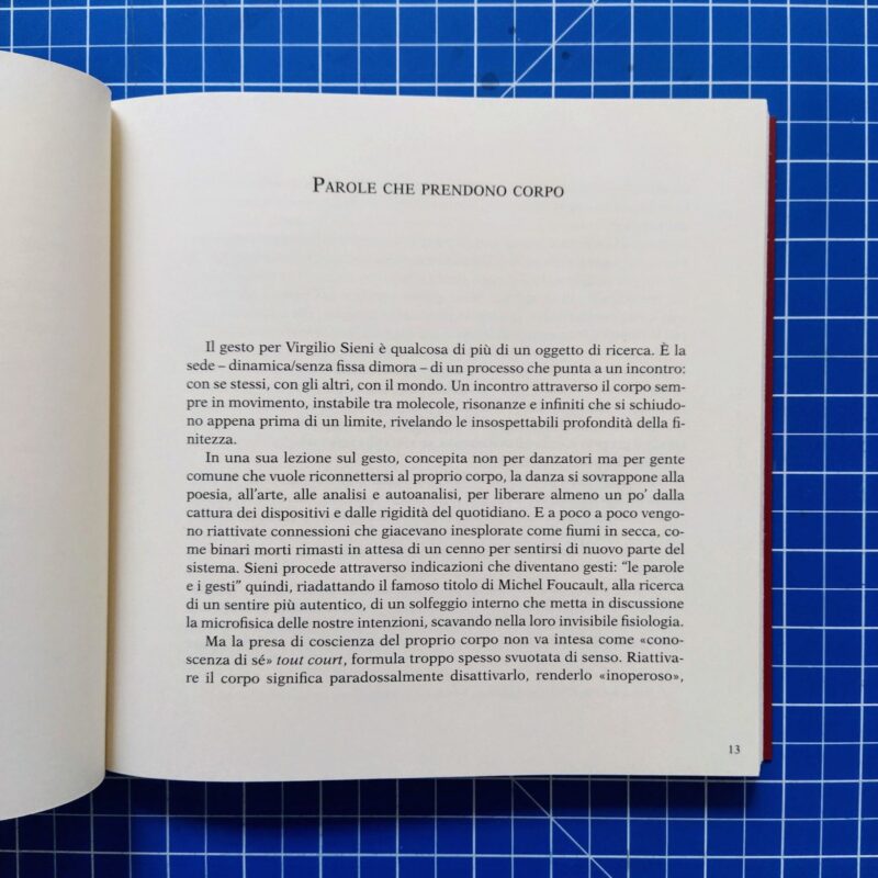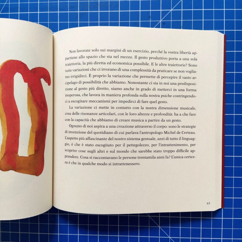 A partire dalla danza di Virgilio Sieni, un dizionario delle parole chiave per accompagnare la "gente comune" a esplorare e ridisegnare i movimenti del proprio corpo in relazione con gli altri, sbloccando abitudini e cambiando sguardo. Una pratica quotidiana per armonizzare pensiero e azione in nuove forme. Insieme si muovono gli acquerelli di Arianna Vairo che cercano allo stesso modo di liberare la mano.