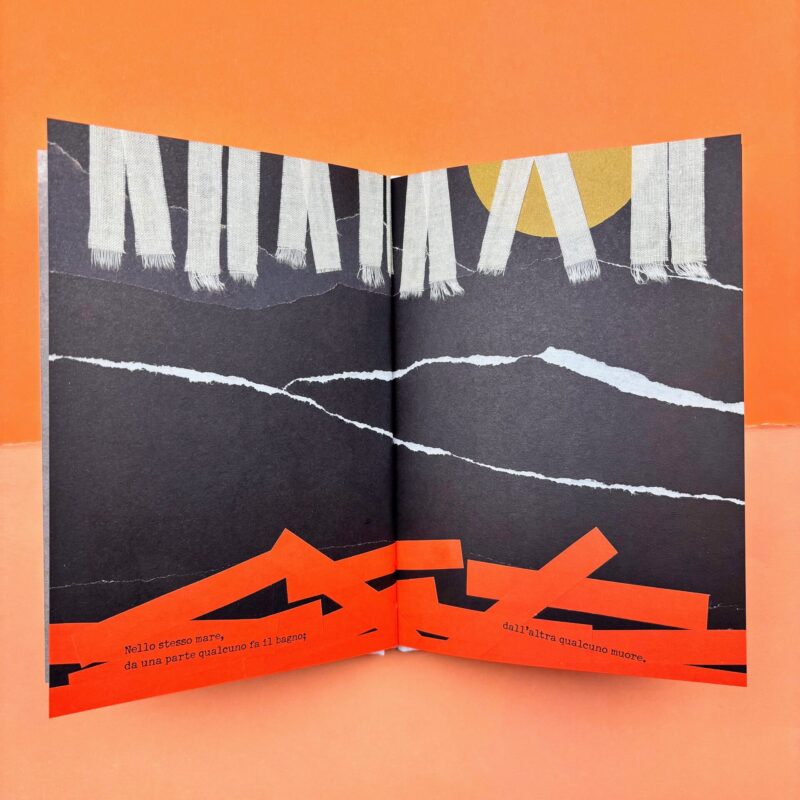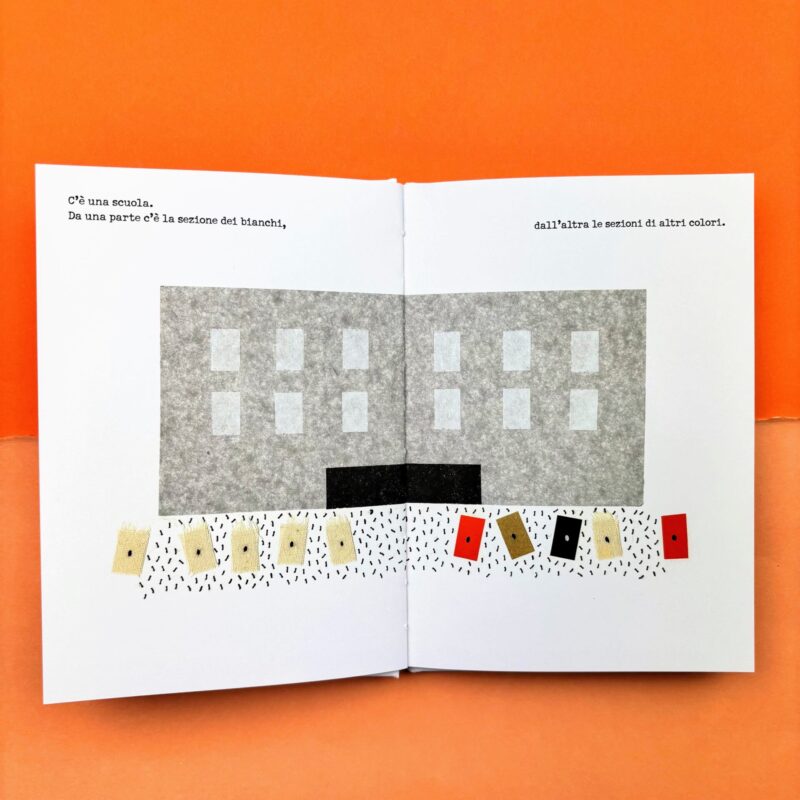 Un piccolo albo con un grande testo che riflette sulle divisioni, le responsabilità, di ognuno di noi e collettive, l’unicità, la diversità, la ricchezza di pochi e la povertà di molti. Insomma, una terra-pianeta che abbiamo caricato di ingiustizie e che porta a un’amara condivisibile conclusione: E poi c’è la terra, sotto, dove tutto è uguale. Le illustrazioni astratte, fatte di stoffa, fili e carte colorate e le affermazioni puntuali, che scorrono come una poesia, disegnano uno spazio sorprendente per questa Terra di cui serve prendersi cura al più presto. Età di lettura: da 5 anni.