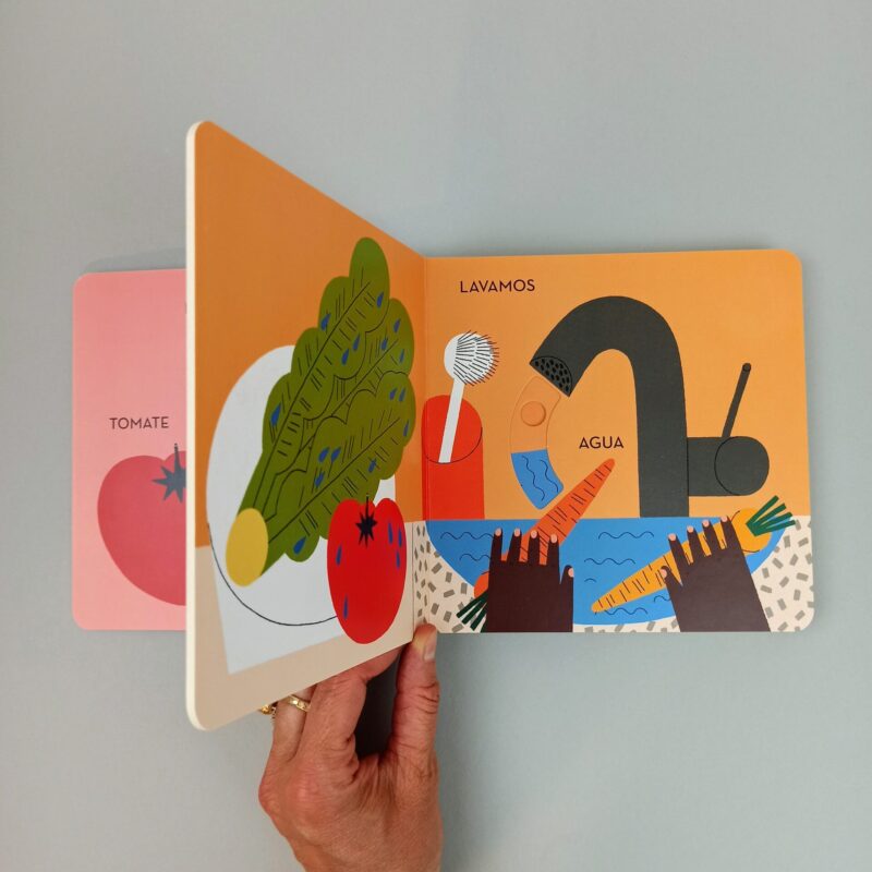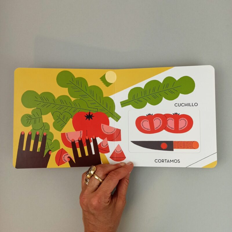 “Pasamos tiempo juntos. ?Hoy preparamos ensalada!”–Back cover