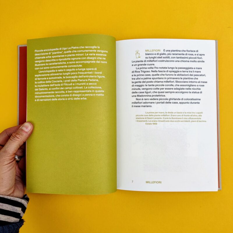 Piccola enciclopedia di piantine nata dall'esplorazione di luoghi poco frequentati, con sguardo scientifico e curiosità per aneddoti storici, culturali e culinari. Insieme alle fotografie di un erbario in ceramica con tracce della raccolta.