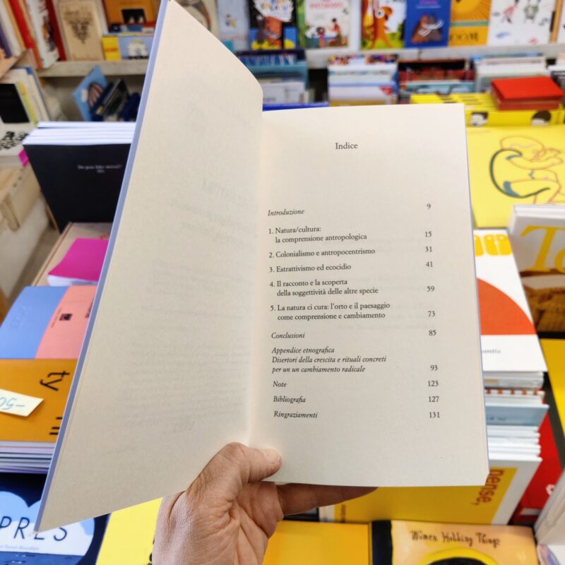 Per secoli abbiamo considerato il pianeta come una risorsa inesauribile, da sfruttare e piegare per i nostri interessi: abbiamo deviato fiumi, estratto dal suolo combustibili, ricoperto il terreno di cemento e riempito l’aria di sostanze chimiche, non curandoci delle conseguenze che questa attività forsennata aveva sulle altre specie che popolano la Terra. In preda a un’avida sete di devastazione abbiamo proclamato il nostro dominio, trasformandoci in predatori del mondo intero. Ma siamo davvero così diversi e superiori rispetto a tutti gli altri esseri viventi? L’antropologo Andrea Staid, intrecciando la storia del pensiero occidentale con esempi di vita quotidiana, ripercorre l’evoluzione dell’antropocentrismo europeo che ha determinato il dualismo tra natura e cultura, permettendo così all’uomo di servirsi degli ecosistemi come risorse produttive per arricchire se stesso. Colonialismo ed estrattivismo diventano le chiavi per capire come abbiamo agito sull’ambiente in nome di un progresso sfrenato, che ha rotto equilibri sociali e naturali. La sfida del nostro secolo consiste nello sviluppare un approccio differente, ecologista, che tuteli davvero l’ambiente anche a costo di ridurre sensibilmente la crescita economica; il pianeta appartiene a tutti e ciascuno di noi è chiamato a cambiare il proprio stile di vita, facendo di giorno in giorno piccole scelte davvero sostenibili. Il critical gardening, la spesa responsabile e il riciclo dei rifiuti sono solo alcune delle possibilità che Staid propone per iniziare a declinare nel quotidiano un’idea di mondo e di ecosistema interconnessi con le nostre vite: un’idea da preservare, se vogliamo salvaguardare la nostra stessa sopravvivenza sulla Terra.