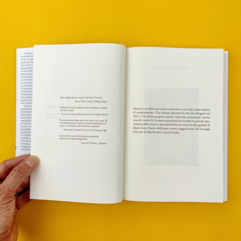 "La mia infanzia mi ha insegnato che il corpo è un oggetto la cui libertà è ridotta dal mondo, ma mi ha lasciato anche l'idea che il corpo sia una forza di liberazione a pieno titolo. (..) I nostri corpi sono potentissimi e lo sono grazie , non malgrado, la loro evidente vulnerabilità".