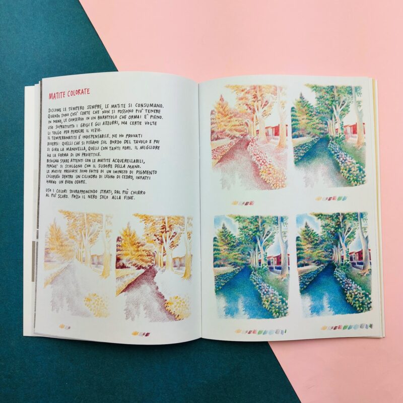 A prima vista, un’enciclopedia di tecniche di disegno dove la sperimentazione di segni e colori diversi crea figure e immaginari differenti. In profondità, la biografia di una grande autrice di libri illustrati che ripercorre la sua lunga carriera attraverso stili diversi, alternando pagine tecniche con vedute panoramiche e poetiche.