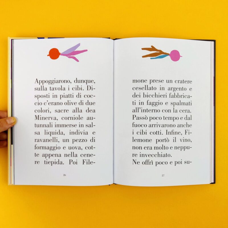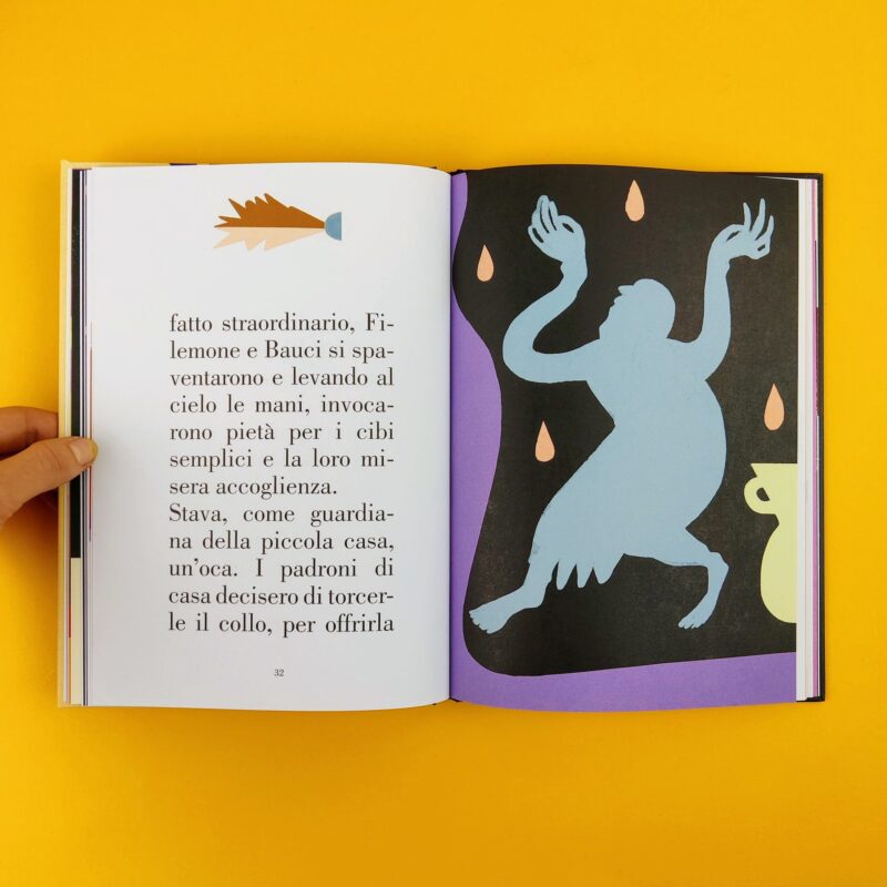Bauci, anziani e poveri abitanti della Frigia, nell’incontro con Giove e suo figlio Mercurio, sotto sembianze umane. Un’accoglienza incondizionata che li ripagherà a sorpresa con una nuova vita da guardiani di un grande santuario e con una dolce morte, uniti come piante intrecciate. Grazie alla riscrittura e alla postfazione dell’archeologa Cristiana Pezzetta ritroviamo un’epoca in cui l’ospitalità era sacra e tutti gli esseri viventi erano uniti dalla stessa sostanza. Ispirandosi alle forme e ai colori di Matisse, le illustrazioni di Daniela Tieni fanno esplodere il racconto come un capolavoro di grande attualità.