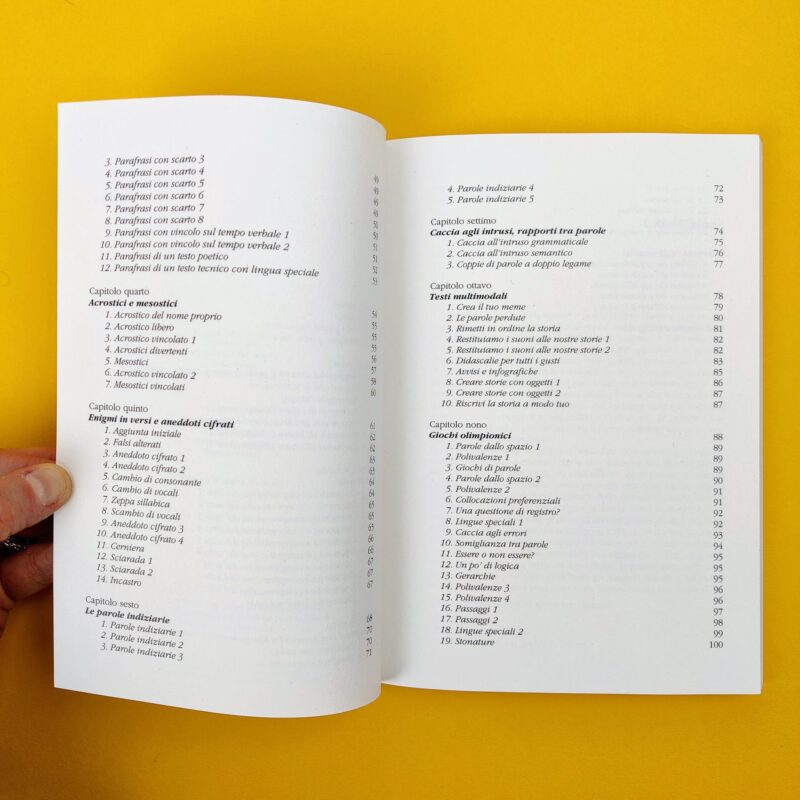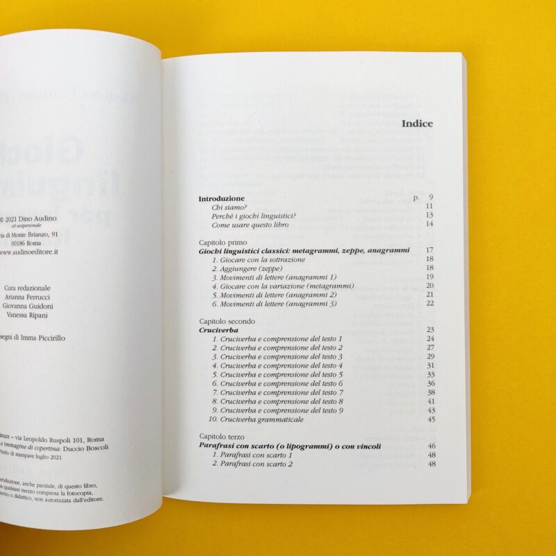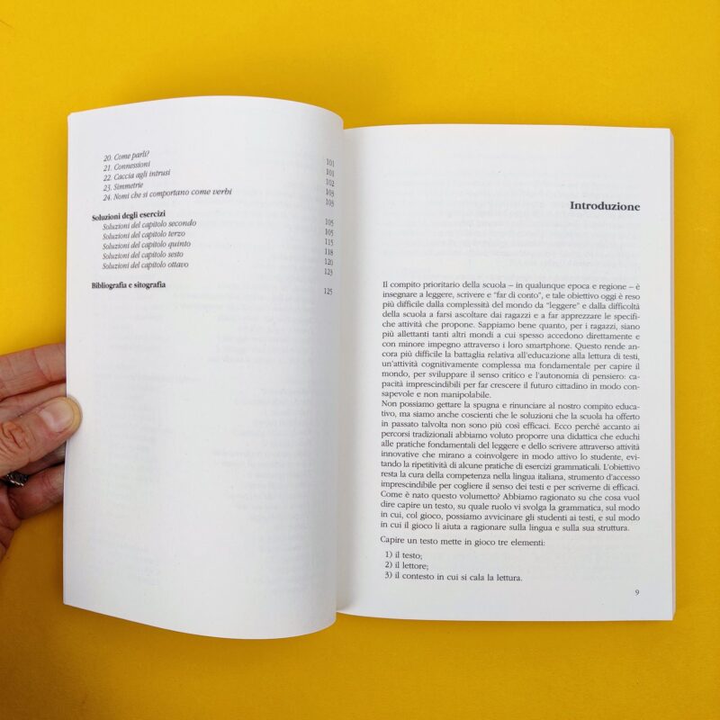 Tullio De Mauro diceva: insegnare “Italiano” significa fare educazione linguistica. Ma come si può educare alla lingua? Il linguaggio verbale è frutto di molteplici capacità. E ogni insegnante sa quanto sia impegnativo, per un allievo, integrare conoscenze e competenze diverse. Questo libro, nato dall’esperienza pluridecennale delle due autrici nell’insegnamento della lingua italiana sia a livello scolastico sia a livello universitario, dà una risposta a questo compito. Dietro la sfida del gioco, nella spasmodica ricerca della soluzione, offre all’insegnante una metodologia utile per far lavorare di concerto le potenzialità e abilità che servono alla comprensione e alla produzione dei testi. Allenando il cervello a cercare strategie, matura la consapevolezza della lingua italiana tramite un divertente percorso. A differenza delle semplici raccolte enigmistiche, le attività sono qui presentate con gli opportuni riferimenti didattici e indicano, di volta in volta, cosa vanno ad affinare (ortografia, morfologia, lessico ecc.). Agli studenti viene data l’opportunità di misurarsi con se stessi e la classe in maniera innovativa. Agli insegnanti, di trovare i giochi più adatti al loro contesto scolastico. All’interno del libro sono presenti le soluzioni di tutti gli esercizi proposti, così come l’indicazione del livello di difficoltà.