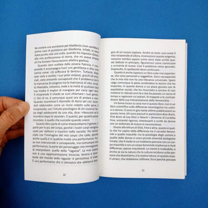 Il genere è un costume attillato che la società ci mette addosso non appena nasciamo, è un copione che interpretiamo, spesso senza accorgercene. Ma cosa accadrebbe se fossimo noi a immaginare nuovi ruoli e a riscrivere il copione? A metà tra saggio e autobiografia, con un tono brillante e ironico, il libro affronta temi cruciali come i ruoli familiari, l’educazione, la sessualità, il rapporto con il corpo, la cultura, il mondo del lavoro, la pornografia, l’intersessualità, il linguaggio. Lungo il filo conduttore delle sue esilaranti esperienze personali, e usando elementi di psicologia, sociologia e filosofia, Emer O’Toole mette in discussione i rigidi stereotipi femminili e il binarismo di genere. Un saggio illuminante e dissacrante che mette in mostra il re nudo, ci svela meccanismi nascosti e ci ispira nuovi modi di interpretare noi stesse.