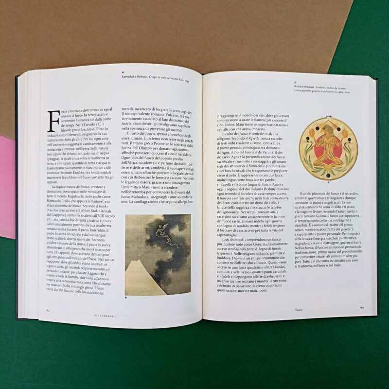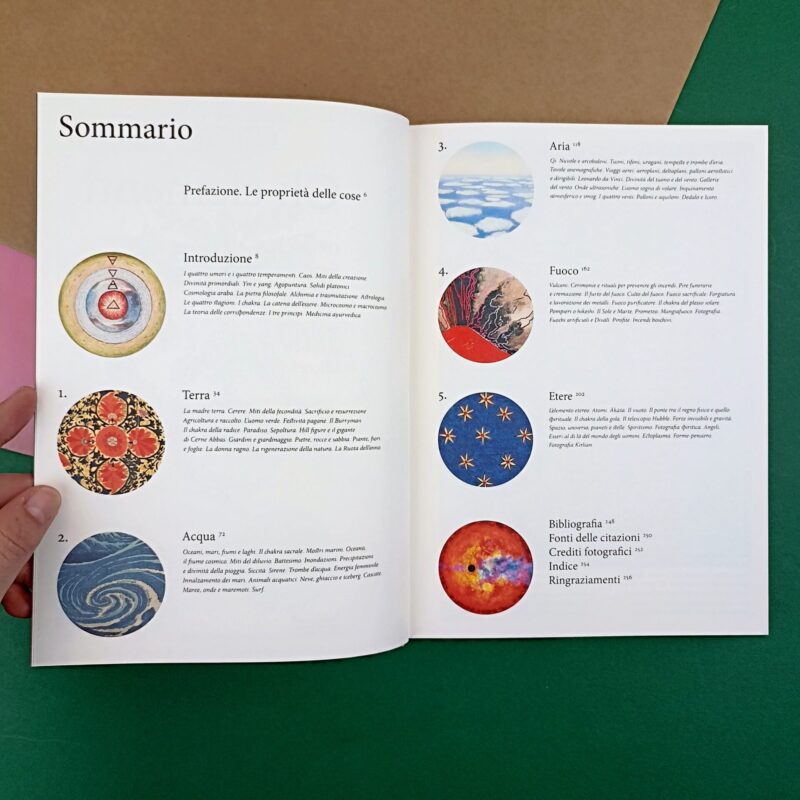 Un compendio di immagini diverse ed evocative che esplorano le associazioni ampie e profonde dei cinque elementi naturali, curato da Stephen Ellcock. Elementi è un tesoro di immagini che esplorano le rappresentazioni delle forze elementari e che rivelano il loro profondo significato per gli antichi filosofi, alchimisti e astrologi, nonché per gli artisti, i fotografi e gli scienziati moderni. Sapientemente curate, tematizzate e abbinate dall’alchimista Stephen Ellcock, le immagini moderne e visionarie sono accostate a quelle antiche e arcane, e il potere creativo degli elementi è contrapposto a quello distruttivo. Seguendo l’ordine degli elementi del medico e occultista Robert Fludd (1574-1637), Ellcock guida i lettori attraverso una selezione di immagini, che salgono dalla terra attraverso l’acqua, l’aria e il fuoco prima di culminare nel più spirituale degli elementi, l’etere celeste. Fa un parallelo con i cinque elementi delle filosofie orientali e il loro rapporto con i chakra, l’agopuntura e l’astrologia cinese. Il testo introduttivo esplora come gli elementi abbiano definito i componenti della Terra e del cielo fin dagli antichi miti della creazione di tutto il mondo, che per primi hanno proposto gli elementi come sostanze fondamentali dell’universo.