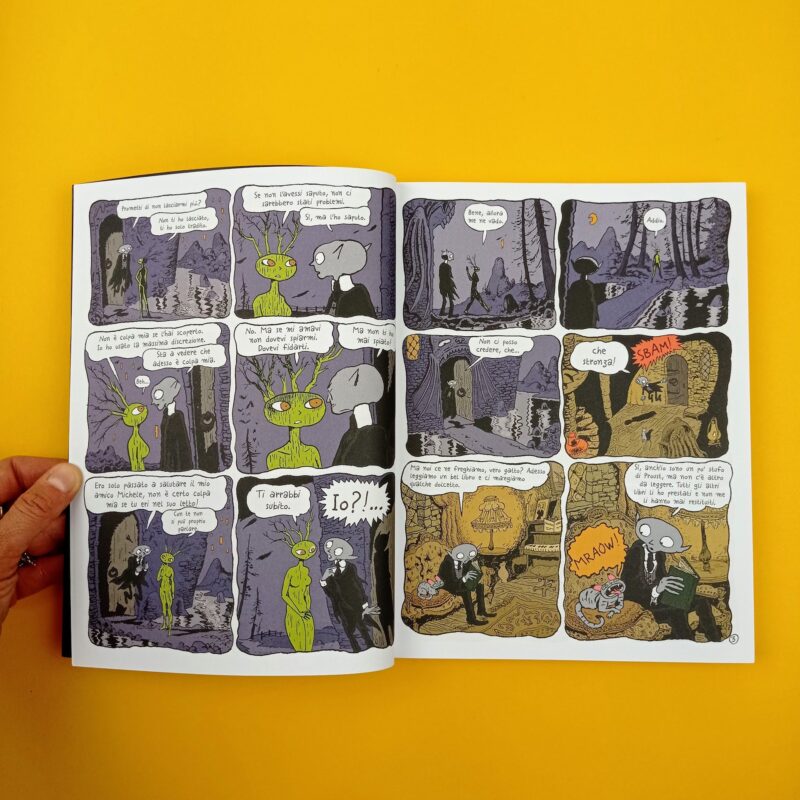 suo migliore amico Michele, lasciandolo in preda alla rabbia e allo sconforto. Di tanto in tanto scivola attraverso una finestra e morde qualche succulento collo femminile... ma piano, con un dente solo, per non fare più male di una puntura di zanzara. Un gentiluomo come lui non può certo svegliare una fanciulla nel cuore della notte! Questa sua onesta attività di vampiro è spesso turbata dalle incursioni di strambi personaggi: c'è Aspirina, che lo ama alla follia come solo una vampira eternamente adolescente può fare; Michele che cerca di riconquistare la sua amicizia; il lupo mandrillo che vuole dargli lezioni di abbordaggio e la polizia di Vilna che lo costringe a indagare su un omicida seriale, per non parlare del tormentato rapporto con Liù. Fernando prova a partire, ma neanche in viaggio riesce a stare tranquillo: in crociera si ritrova nel bel mezzo di una sparatoria tra un dandy inglese e alcune mummie egizie, mentre a Parigi una turista giapponese attenta alla sua vita fotografandolo con il flash... E se tutte queste disavventure fossero proprio quello di cui Fernando ha bisogno per movimentare la sua esistenza immortale ed eternamente uguale a sé stessa? In questo primo volume dedicato al Gran Vampiro, sono raccolti quattro episodi: Cupido se ne frega, Mortali per la testa, Translatlantica in solitario e Mentre Vilna dorme. I lettori affezionati di Sfar potranno ritrovare i protagonisti di Piccolo Vampiro con qualche anno e qualche grattacapo in più, e incontrare nuovi personaggi come i poliziotti Vincent Ehrenstein e Humpty Dumpty, l'Uomo-Albero, l'eremita dei boschi Elia con il suo Golem, Liana ("ma tutti la chiamano Liù"), le belle sorelle vampire Aspirina e Josamicina e uno stuolo di altre fanciulle che faranno battere il cuore del vampiro più malinconico, ironico e imbranato della storia del fumetto.