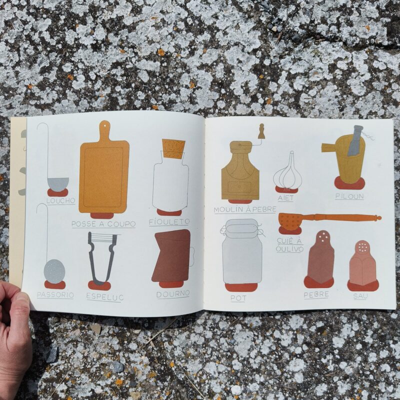 Imagier della Provenza rurale. Piccola e intima enciclopedia della sua quotidianità, Bettina Henni ha raccolto attraverso il disegno oggetti e figure legate alle tradizioni popolari, alla natura, all’artigianato e alla vita rurale. Ogni oggetto, disegnato su una base, è accompagnato dal suo nome in provenzale: è un po' come un catalogo di amuleti!