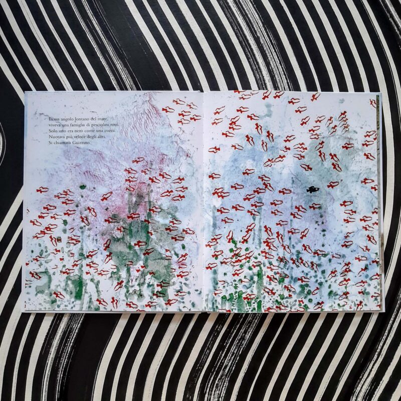 che viene a Guizzino di un grande pesce formato da una miriade di minuscoli pesciolini, ma la decisione proclamata con forza: <>. Chiunque avesse famigliarità con la mia ricerca di una giustificazione sociale nel fare Arte, nel diventare o essere un artista, avrebbe immediatamente afferrato cosa spingeva Guizzino, la mia prima vera incarnazione di un alter ego, a esortare i suoi piccoli amici terrorizzati a nuotare tutti insieme, come un unico grande pesce. <>, dice Guizzino, improvvisamente consapevole delle implicazioni etiche del proprio posto nella folla. Aveva colto l’immagine del grande pesce con la propria mente. Era quello il dono che aveva ricevuto: il dono di vedere. Leo Lionni, Tra i miei mondi. Una autobiografia, Donzelli 2014, p 254