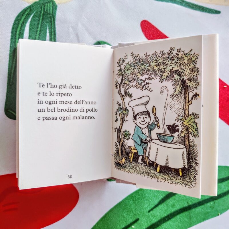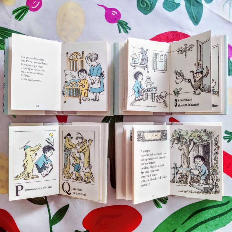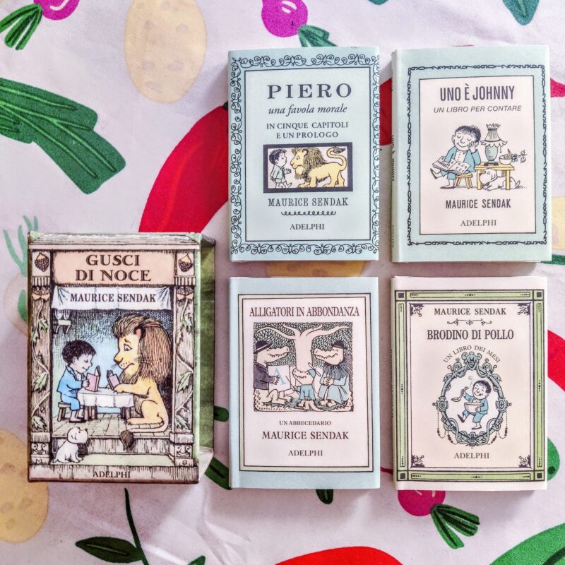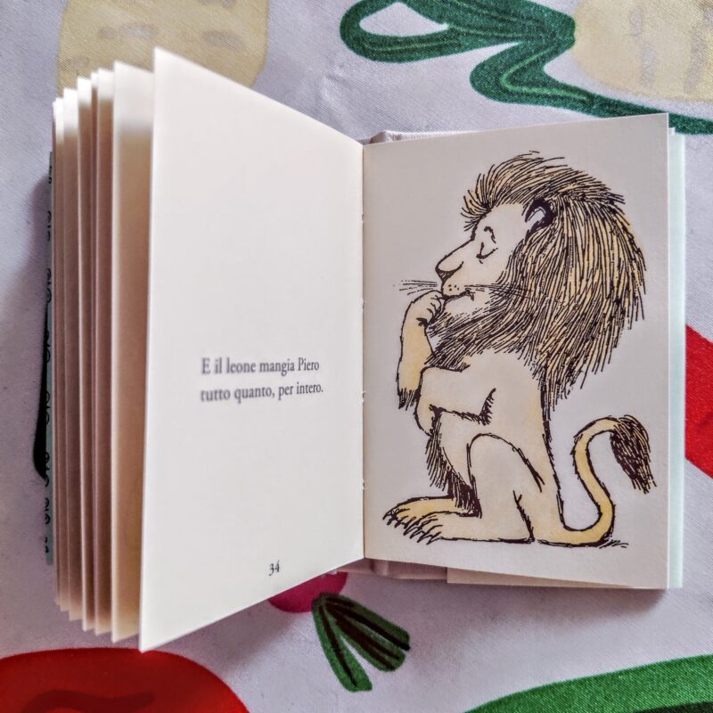 fine degli anni Settanta con la Emme edizioni, il secondo, di Sendak, in Italia non ci è proprio mai arrivato dagli inizi degli anni Sessanta. Si incontrano lì, in equilibrio su quella frase. Il signore-che-non-puliva-mai l'automobile è vivo e vegeto, magari ti capirà di incontrarlo con la sua alberoautomobile, a risolvere allegro e spensierato come sempre la crisi climatica. Piero, poverino, è sparito, inghiottito da un leone, ma sopravvive nell'irriverenza di tutti i bambini, insieme agli altri tre Gusci di noce.