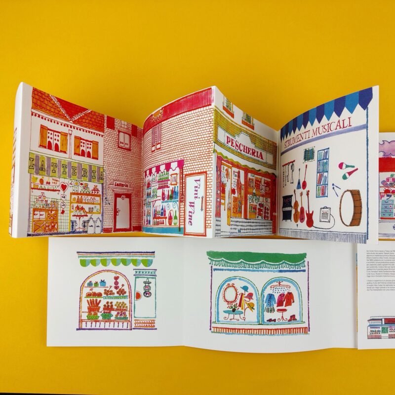 Un leporello illustrato per biodiversità commerciale più che per la salvaguardia di botteghe storiche in mezzo a ristoranti in città gentrificate.