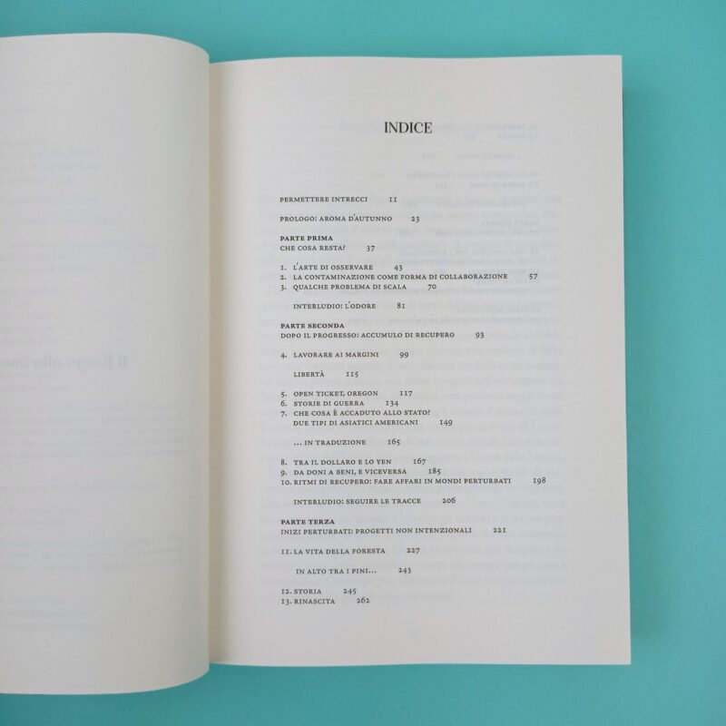 Si dice che, dopo la bomba atomica su Hiroshima, la prima forma di vita a spuntare in quel paesaggio devastato sia stato un matsutake. Si tratta di uno dei funghi commestibili più ricercati dell’Asia: non cresce solo in Giappone dove raggiunge prezzi astronomici, ma anche in varie aree dell’emisfero boreale. Questo fungo dall’odore intenso ed evocativo non può essere coltivato e preferisce crescere su terreni e foreste perturbati dalla presenza umana. Il racconto di Anna Lowenhaupt Tsing – ormai diventato un classico – ruota attorno a questi ricercatissimi funghi, offre approfondimenti e spunti che vanno ben oltre l’ambito micologico, e pone una domanda essenziale: cosa riesce a vivere tra le rovine che abbiamo generato? Esplora angoli inattesi e inconsueti del commercio del matsutake e ci conduce tra buongustai giapponesi, commercianti, combattenti hmong, guide naturalistiche finlandesi, abitanti della costa pacifica degli USA e altro ancora. Compagni di viaggio che ci permettono di perderci e sorprenderci tra ecologie fungine e storie forestali e che ci fanno sperare nella possibilità di una convivenza collaborativa tra specie in un’epoca di massiccia devastazione umana.