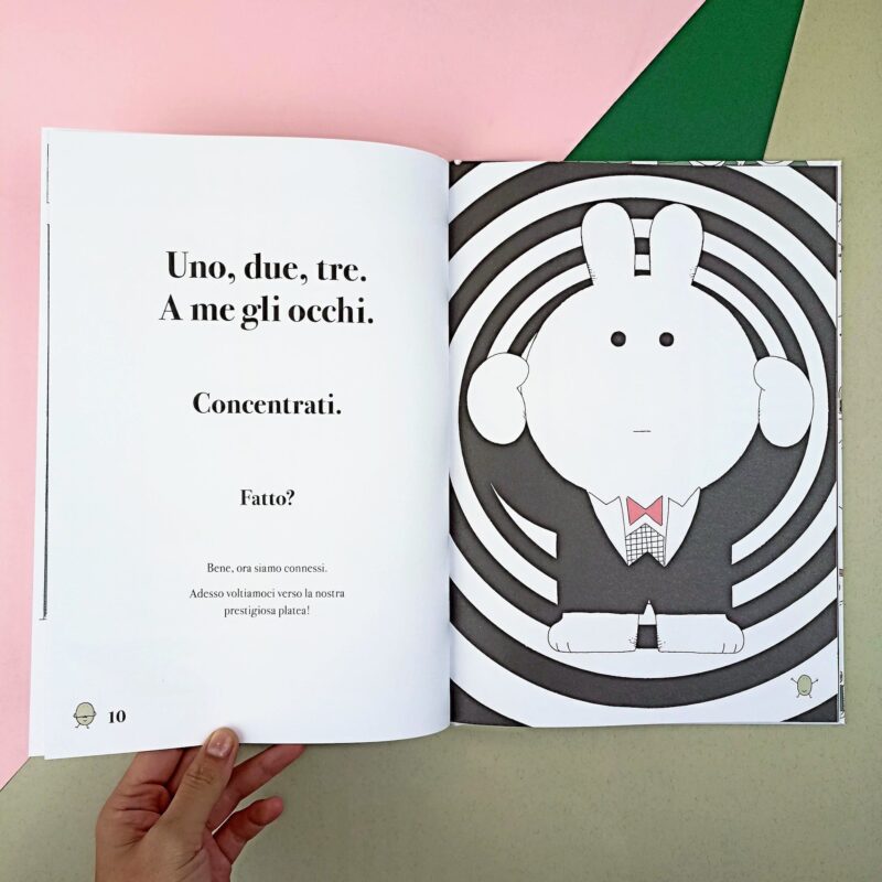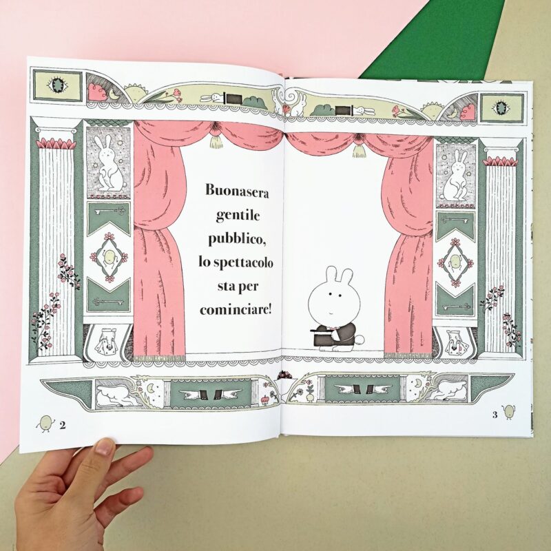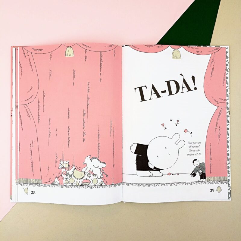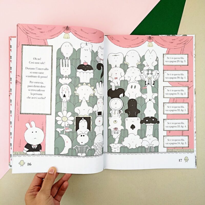Un libro davvero magico! Lo spettacolo inizia, in pausa gli spettatori hanno cambiato tutti posto: aiutiamo il coniglio presentatore a capire dove sono finiti, cerchiamoli in mezzo alla folla e individuiamo il nostro personaggio di riferimento senza dirlo. In poche pagine il libro indovinerà chi abbiamo pensato!