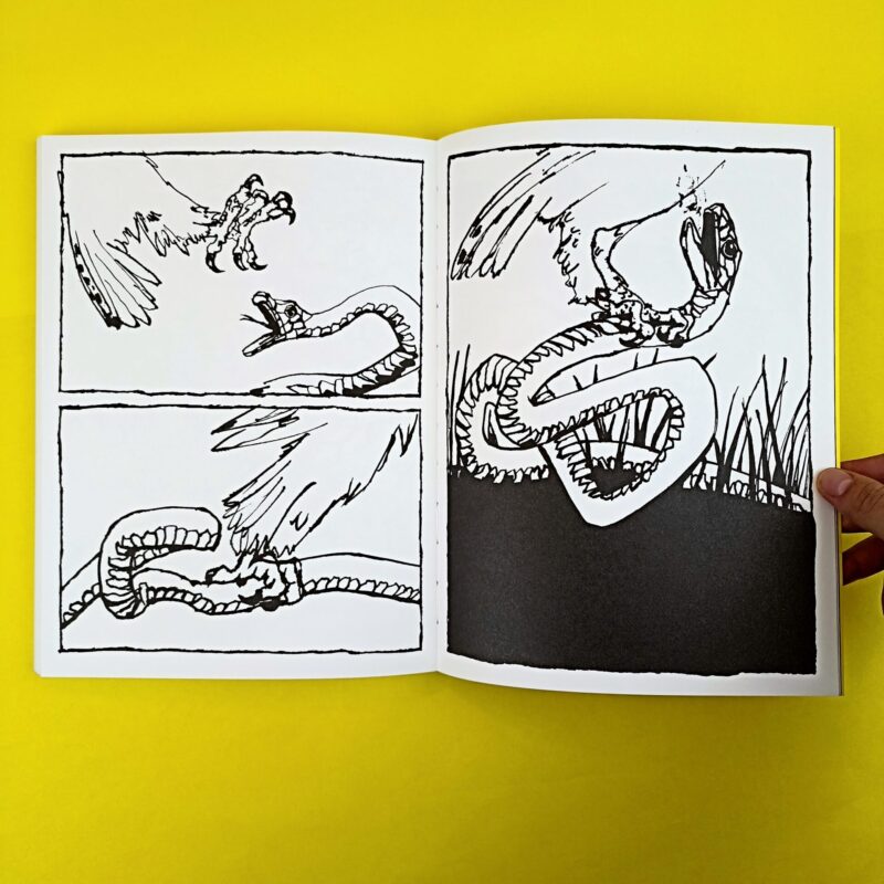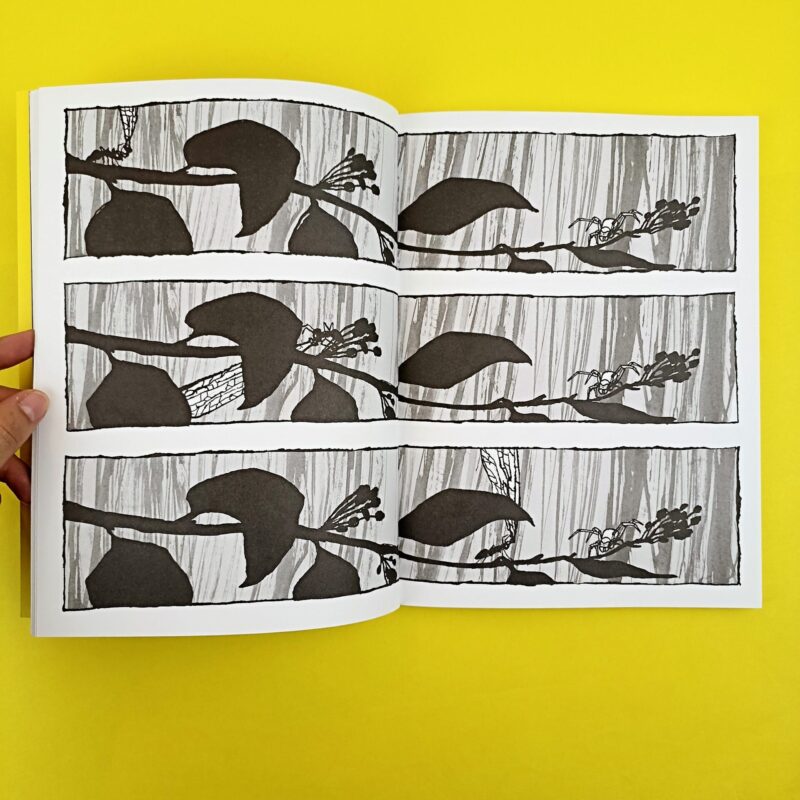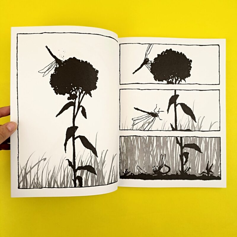 Seguendo le vicissitudini della catena alimentare che unisce la morte di una libellula a tutti gli altri animali, Dedieu racconta in fumetto senza parole l’ironia della sorte di un giardino come un noir. Attenti a come parliamo di madre natura!