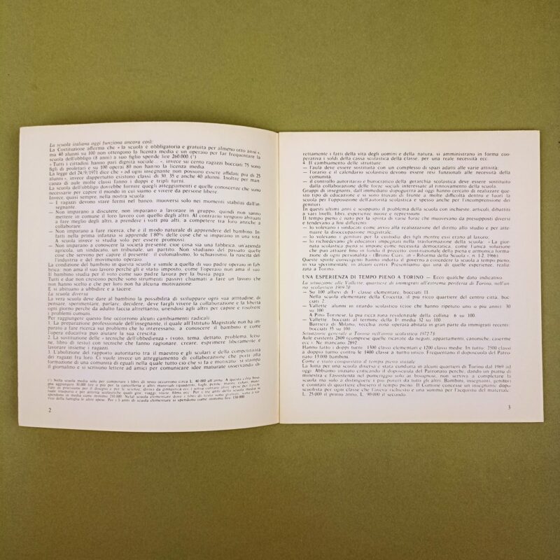 testo collettivoa cura del gruppo di insegnanti torinesi che ha lavorato alla preparazione del convegno unitario CGIL-CISL-UIL sulla scuola a tempo pieno tenutosi a Torino il 15-16-17 giugno 1973