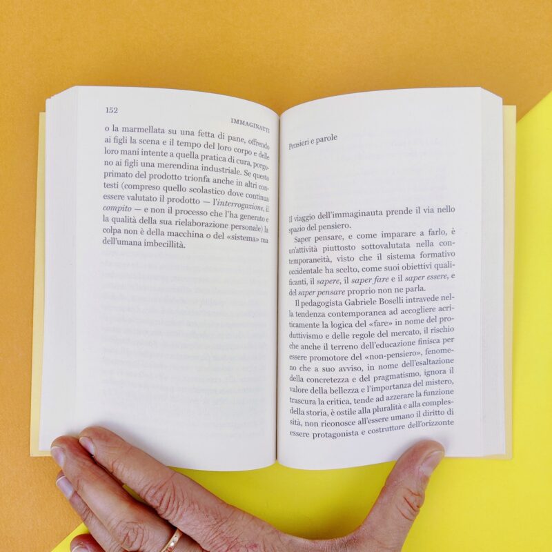 «Il viaggio dell’immaginauta prende il via nello spazio del pensiero. Saper pensare, e come imparare a farlo, è un’attività piuttosto sottovalutata nella contemporaneità, visto che il sistema formativo occidentale ha scelto, come suoi obiettivi, il sapere, il saper fare e il saper essere, e del saper pensare proprio non se ne parla».