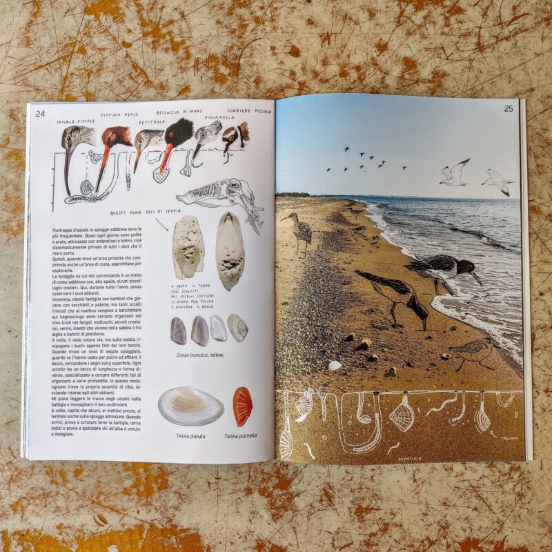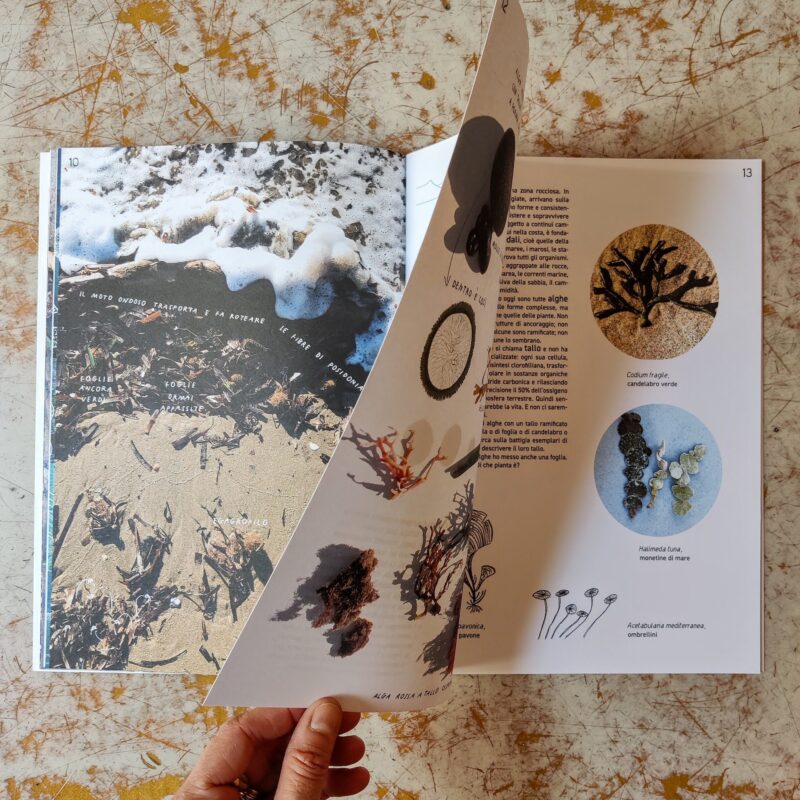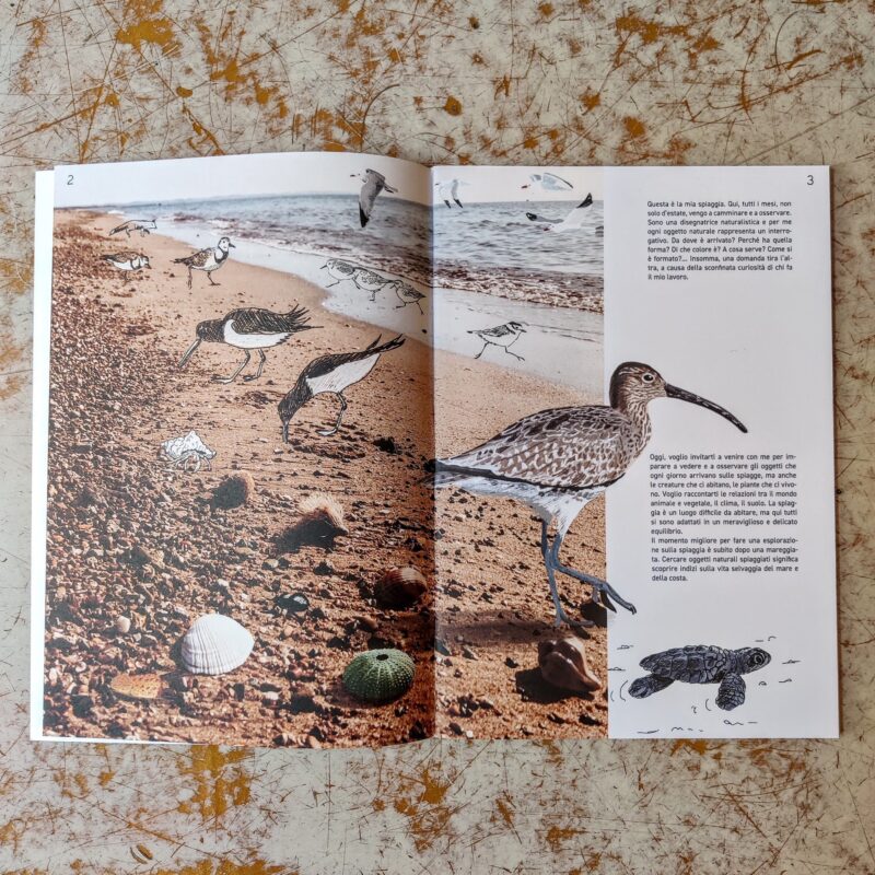 prospettiva: camminare, osservare, prendere, lasciare andare e allargare lo sguardo. Al collezionare sono sostituiti i gesti leggeri di fotografare, disegnare e leggere. Alla scoperta di tutti gli oggetti naturali che sono rimasti sulla spiaggia dopo una mareggiata si apre la relazione con le creature e le piante che vivono in quell’ambiente e con il paesaggio circostante. Guardare diventa così un modo per prendersi cura, un’ecologia del pensiero, un’attitudine di vita.