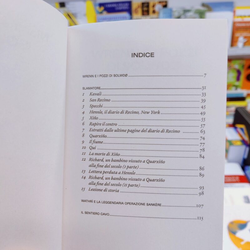 “Mi scusi signorina cos’è il centro di una persona? Come si fa a…prendere…rapire…”. (..) Xino rispose indicando educatamente la scala. L’uomo rispose “No, non ho tempo, però cos’è il centro di una persona, signorina, cos’è?” Xino lasciò la corda vicino alla botola, scese dalla cupola, andò verso il cartello e si fermò di fronte all’uomo rugoso che ora somigliava in maniera impressionante a Recimo e bisbigliò nel suo orecchio peloso: ” Signore, nessuno ha un centro. Sto cercando di prendere qualcosa che non ha. Se avesse un centro non riuscirei mai a prenderlo perché sarebbe suo”. (..) É nel suo corpo, signore. C’è un punto del suo corpo in cui le sue cattive intenzioni incontrano le sue buone intenzioni”.