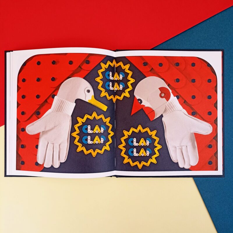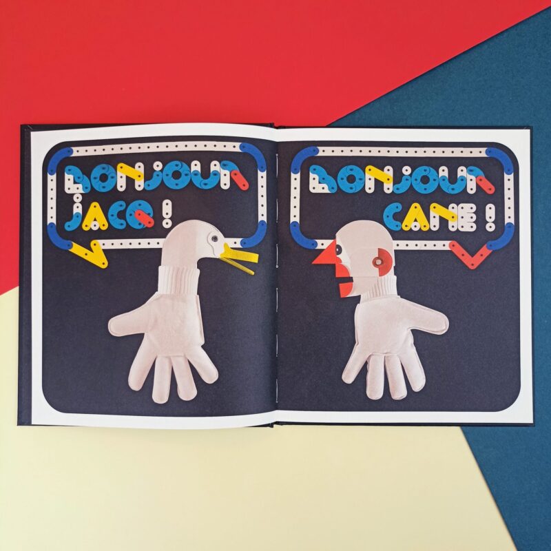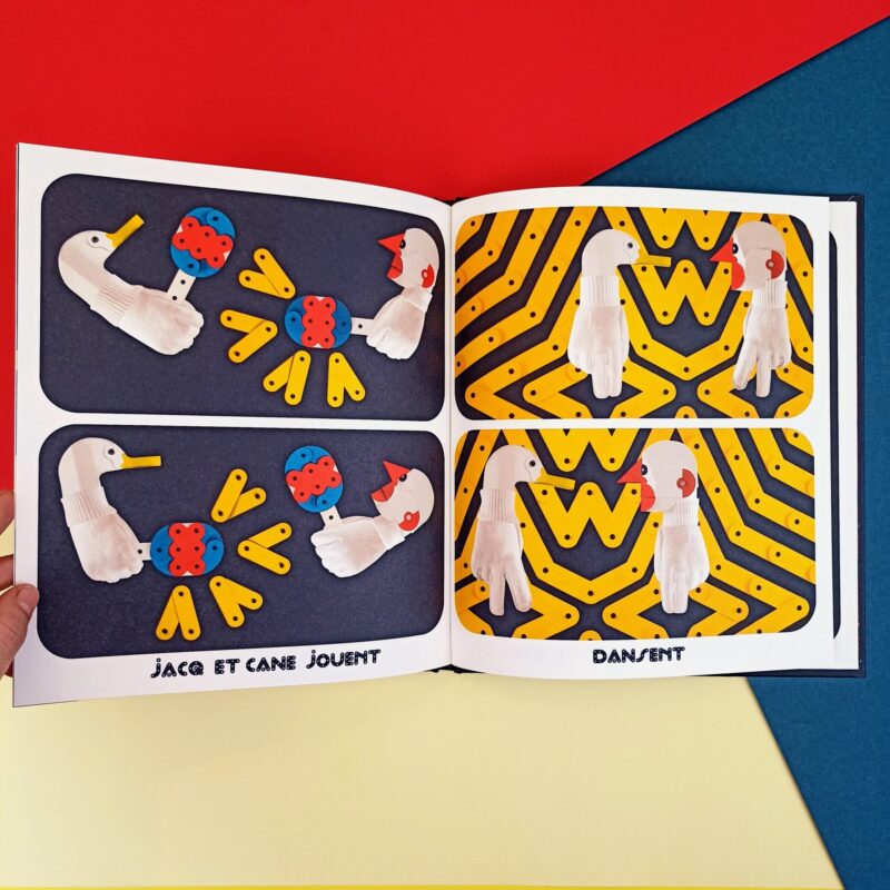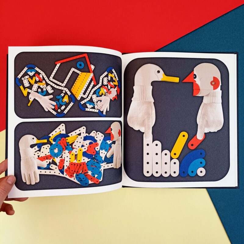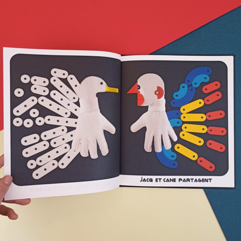 Chiara, netta e definita, nel caso di Marion Bataille diventa testimone di un “teatro” dove i personaggi-marionette montano e smontano una scenografia di pezzi di legno stile meccano per costruire nuovi scenari immaginari e di vita.