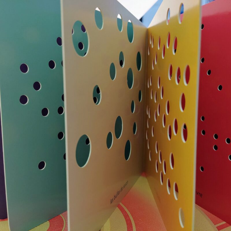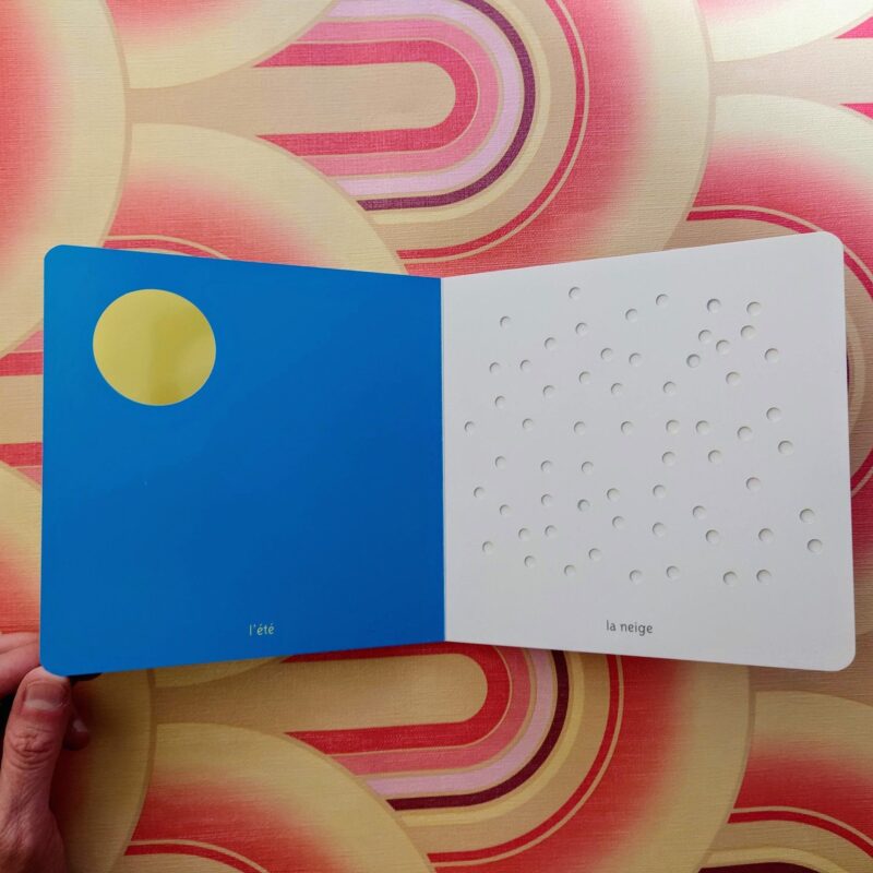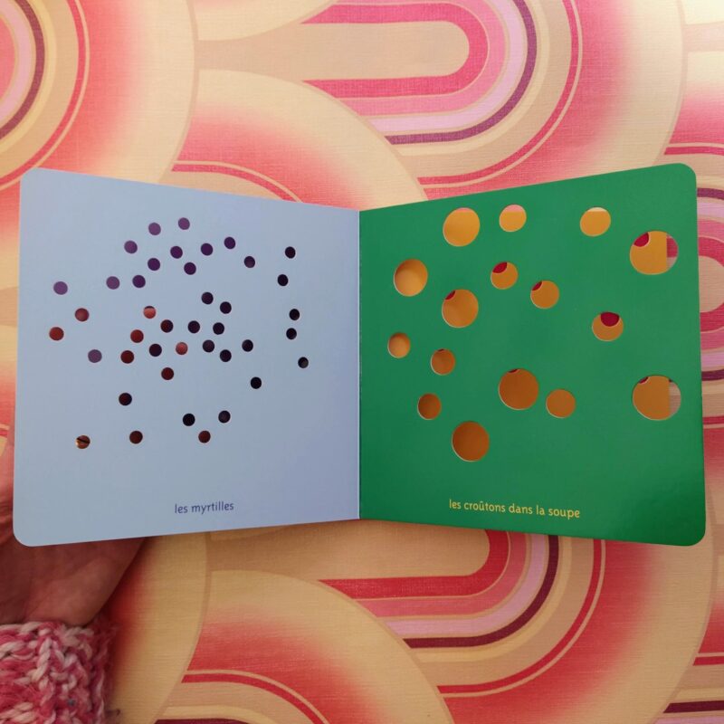 Una costellazione di buchi di diversa dimensione per inventariare tutte le cose tonde che amiamo di più, dalla cucina al cielo: mirtilli, crostini, pepe, liquirizia, bolle di sapone, neve e stelle… con un finale sottile.