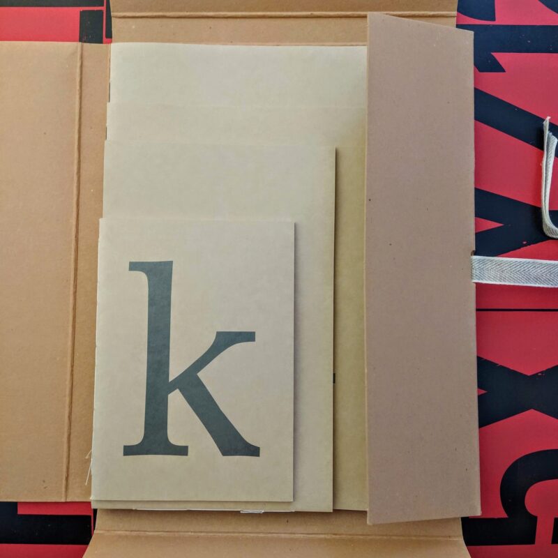 Sei libri rilegati a mano contenuti in un portfolio. Libri e copertine sono stati stampati da Nina Holland sulla macchina da stampa offset-litografica Roland 200 di Little Steidl usando quattro colori per i libri e un inchiostro grigio grafite per le copertine.
