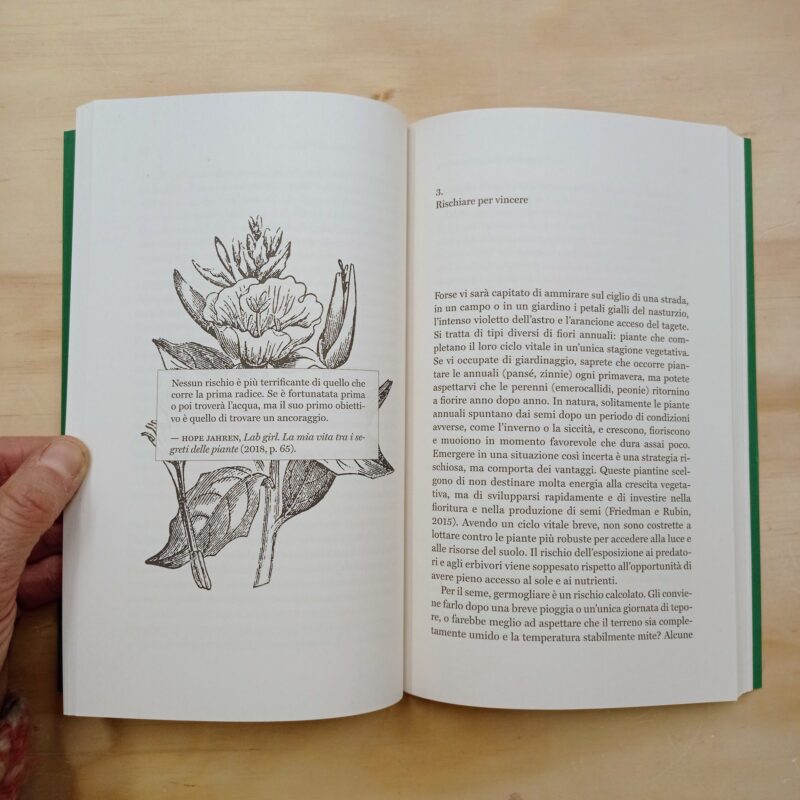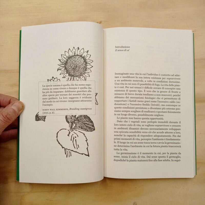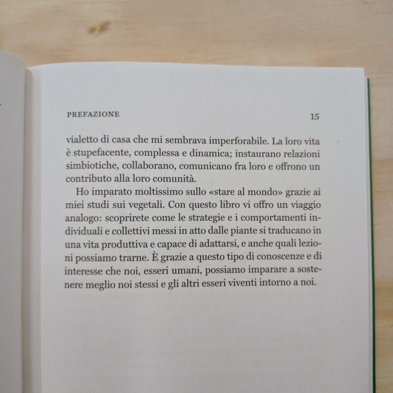 "Noi esseri umani dobbiamo innanzitutto prestare attenzione. Dobbiamo guardare oltre ciò che è visibile a un primo sguardo per renderci davvero conto di come le piante sanno sostenere se stesse e gli altri organismi con cui vivono, e persino trasformare il proprio ambiente. Poi, attraverso un'attenta osservazione, dobbiamo porci le giuste domande per trarne insegnamenti su come vivere un fine, l'intenzione e la capacità di agire. E forse potremo fare nostro qualcuno dei comportamenti. Le lezioni delle piante sono tutte da scoprire".