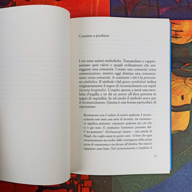 «I riti sono azioni simboliche. Tramandano e rappresentano quei valori e quegli ordinamenti che sorreggono una comunità. Creano una comunità senza comunicazione, mentre oggi domina una comunicazione senza comunità.»