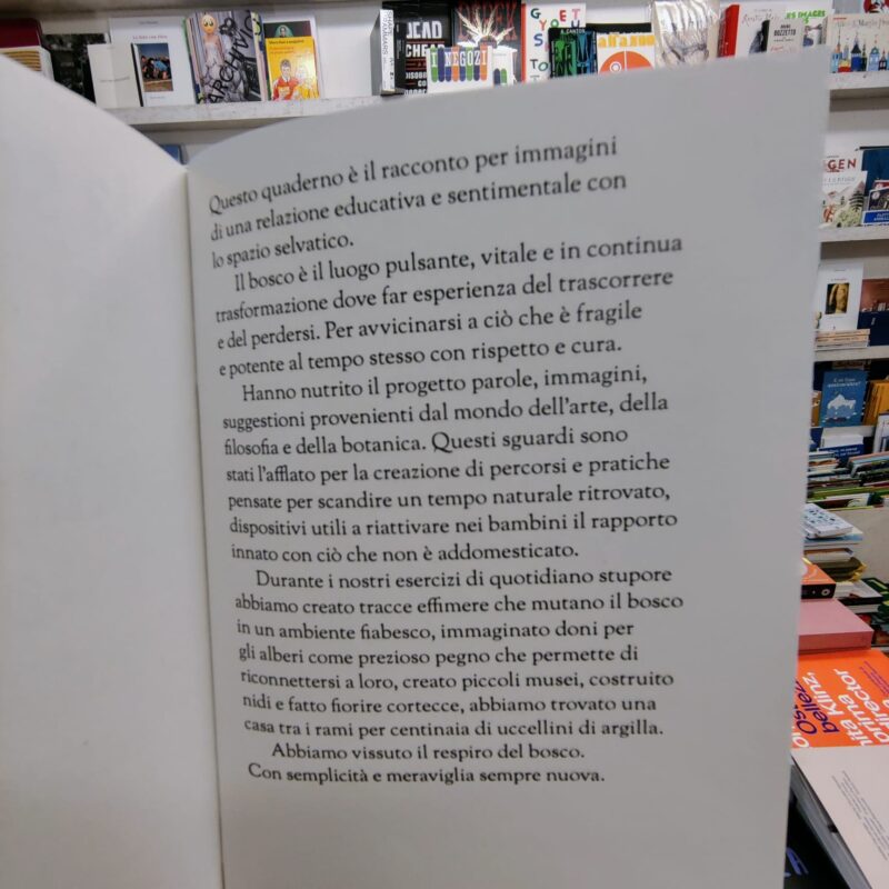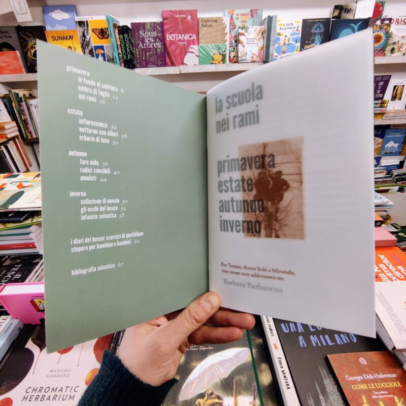 piccole edizioni 2023 Progetto realizzato con il sostegno di Fondazione A. De Mari Se il barone rampante lo avesse avuto tra le mani, salire sopra un albero non sarebbe più statao un gesto di protesta ma di amronia. La scuola nei rami è una raccolta di suggestioni laboratoriali in forma di lampi, suddivise per ogni stagione, semi di parole, citazioni letterarie, segni e fotografie che intrecciano arte, ambiente ed educazione per proporre attività che si basano su pratiche relazionali, installative e performative. Il lavoro muove dall’esperienza sul campo e dall’osservazione di un gruppo di bambini di quinta elementare che per un anno scolastico hanno sperimentato l’alterità dello spazio naturale utilizzando come “aula-altra” il bosco che si trova a pochi metri dalla loro scuola. Un progetto didattico che si muove con delicatezza per esplorare tutte le connessioni che nascono in un bosco.