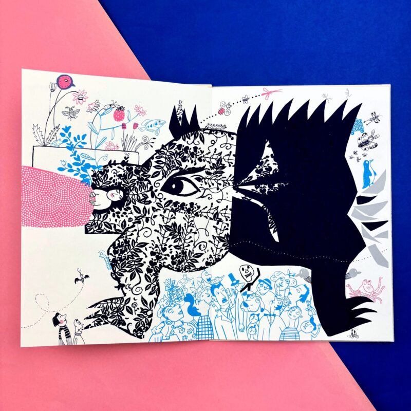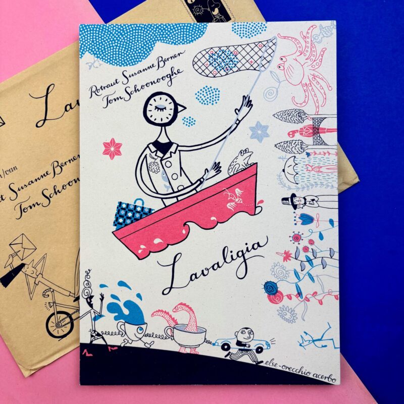 Questo libro nasce da… una caduta! Un po’ di tempo fa Tom e Susanne si incontrarono durante un festival di letteratura in un ristorante in Giappone. Proprio durante la cena, tra gente ben vestita che mangiava, beveva e chiacchierava, la sedia di Susanne si ruppe e lei cadde a terra. Tutti rimasero in silenzio a guardarla fino a quando Susanne si alzò, tirò fuori una penna dalla tasca e la diede Tom, che le sedeva di fronte, chiedendogli di disegnare ciò che aveva appena visto. Tom disegnò una donna che cadeva con vistosi stivali ai piedi, mutande in vista e bottiglie e bicchieri che volavano in aria. Susanne rise, prese anche lei una matita, aggiunse alcune strane figure e così, per tutta la notte, andarono avanti a disegnare insieme su qualsiasi foglio di carta trovassero. Quando lasciarono il ristorante Susanne tornò nel suo paese, in Germania, e Tom in Belgio. Dopo qualche giorno Tom infilò alcuni disegni in una busta da lettera e li spedì a casa di Susanne. Lei vi disegnò intorno, sopra e sotto e li rispedì in Belgio. Tom rispose continuando a disegnare e a inviare lettere piene zeppe di nuovi personaggi. Da allora Tom e Susanne non hanno più smesso di spedirsi disegni via posta e di essere amici. È da questo dialogo, fatto di figure che spuntano da un disegno all’altro, che nasce questo libro.